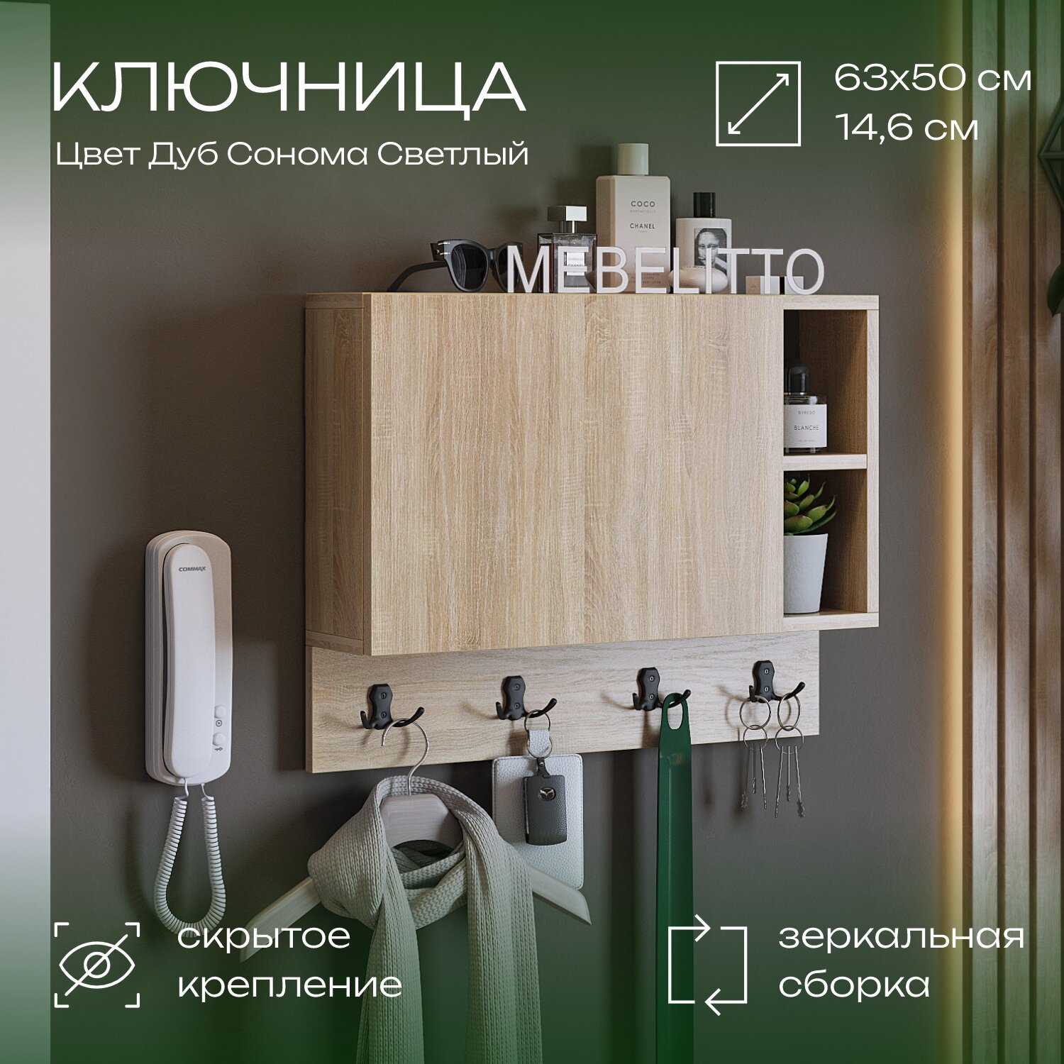 СохранитьКлючница настенная в прихожую с полкой на щиток, деревянная для дома, Дуб Сонома интересное: