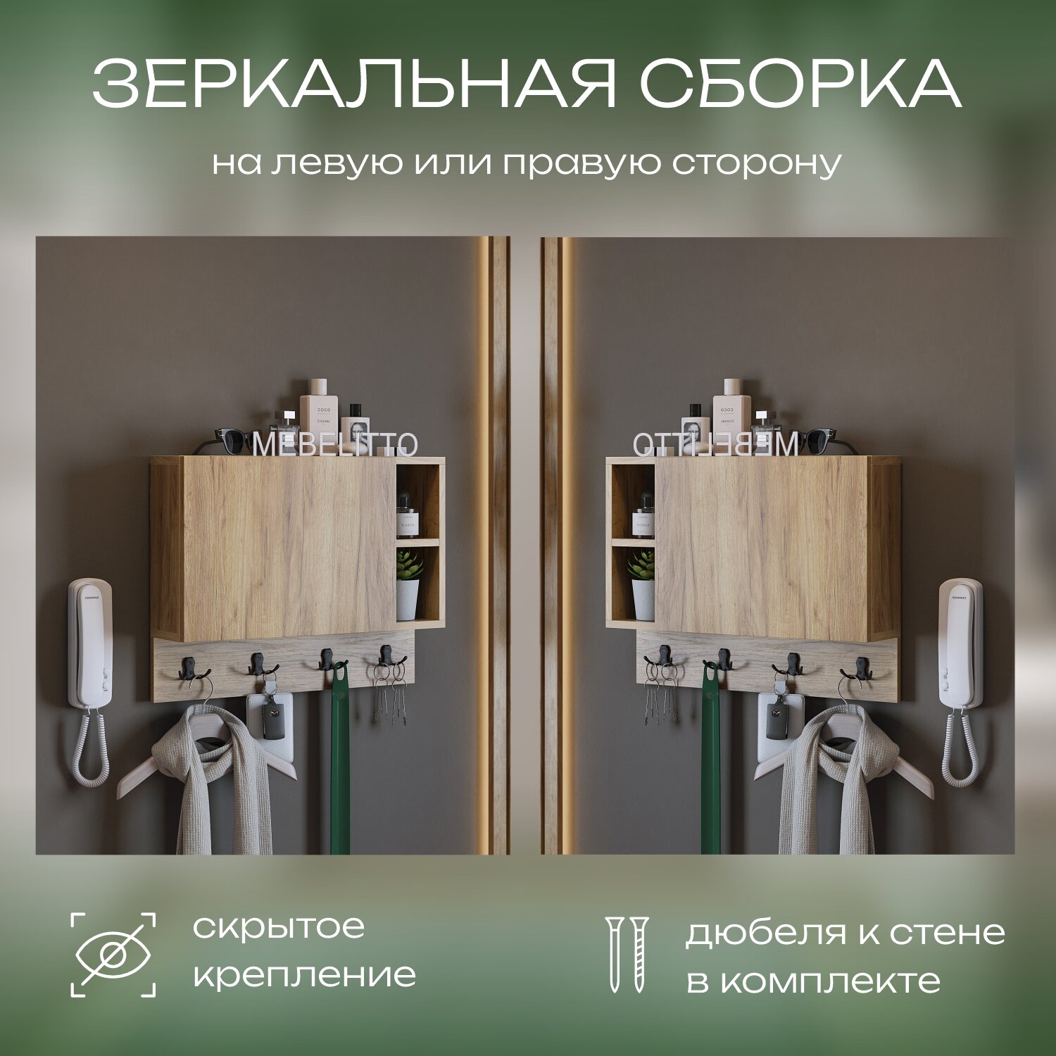 СохранитьКлючница настенная в прихожую с полкой на щиток, деревянная для дома, Дуб крафт золотой интересное: