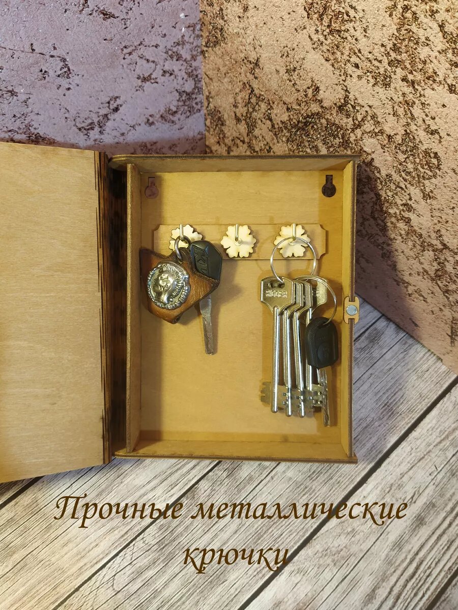 Ключница закрытая большая 'Правило дома', с узорами.