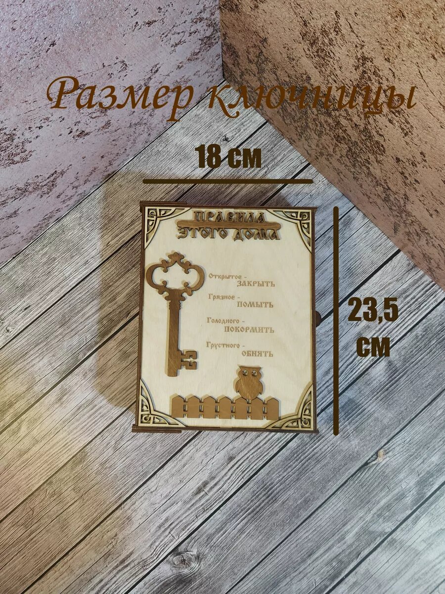Ключница закрытая деревянная 'Правила этого дома, Ключик'