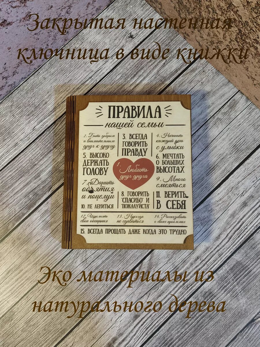 СохранитьКлючница закрытая деревянная 'Правила нашей семьи, Сердце' интересное: