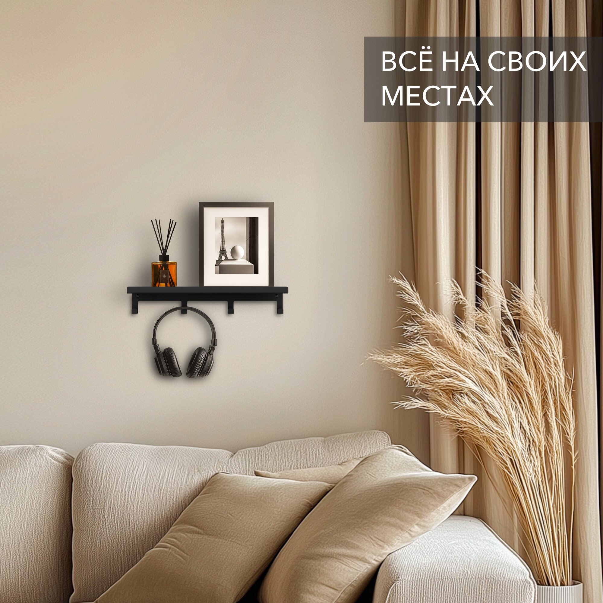 Ключница настенная 5 крючков металлическая черная навесная на стену с полками лофт 3 шт 50 см