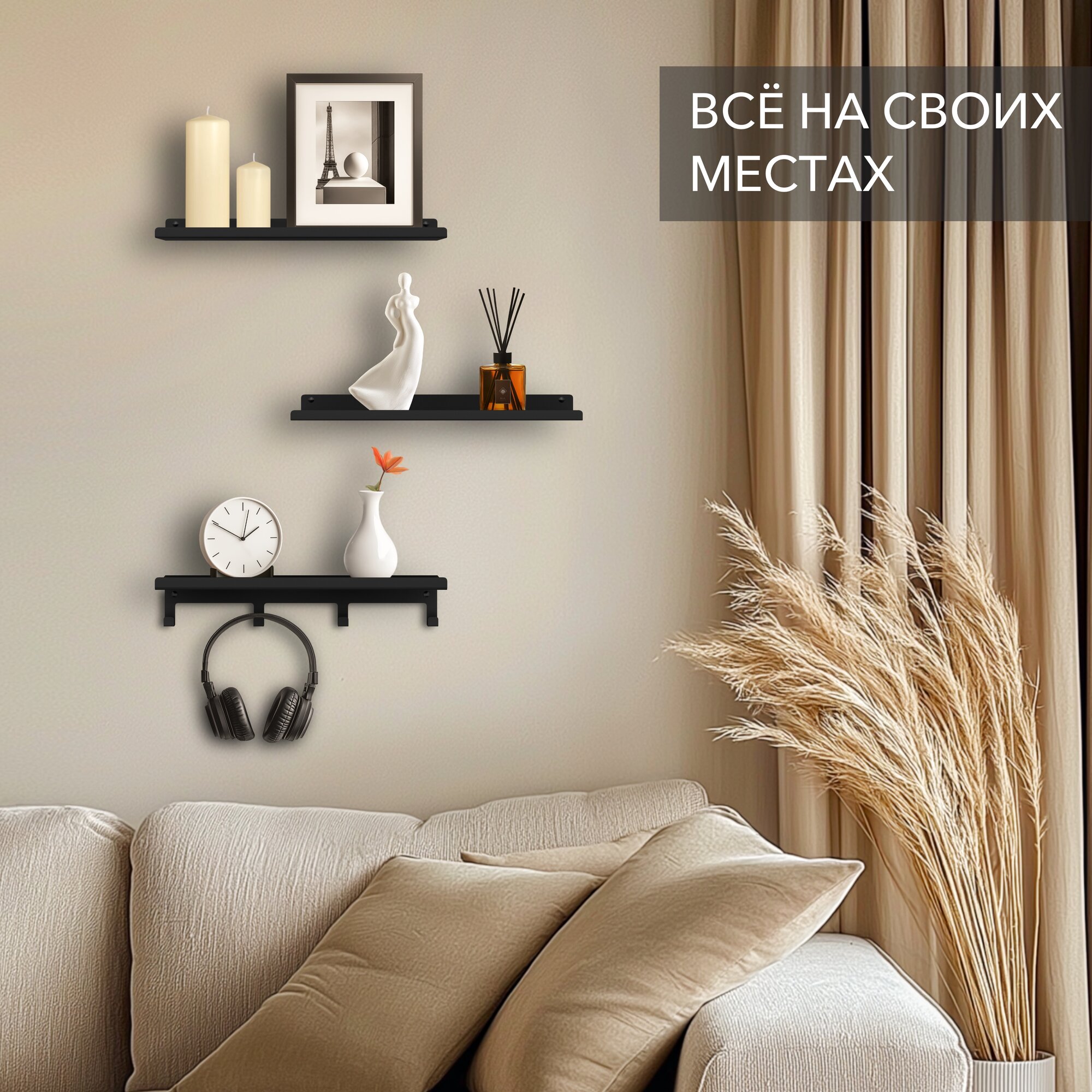 Ключница настенная 5 крючков металлическая черная навесная на стену с полками лофт 3 шт 50 см