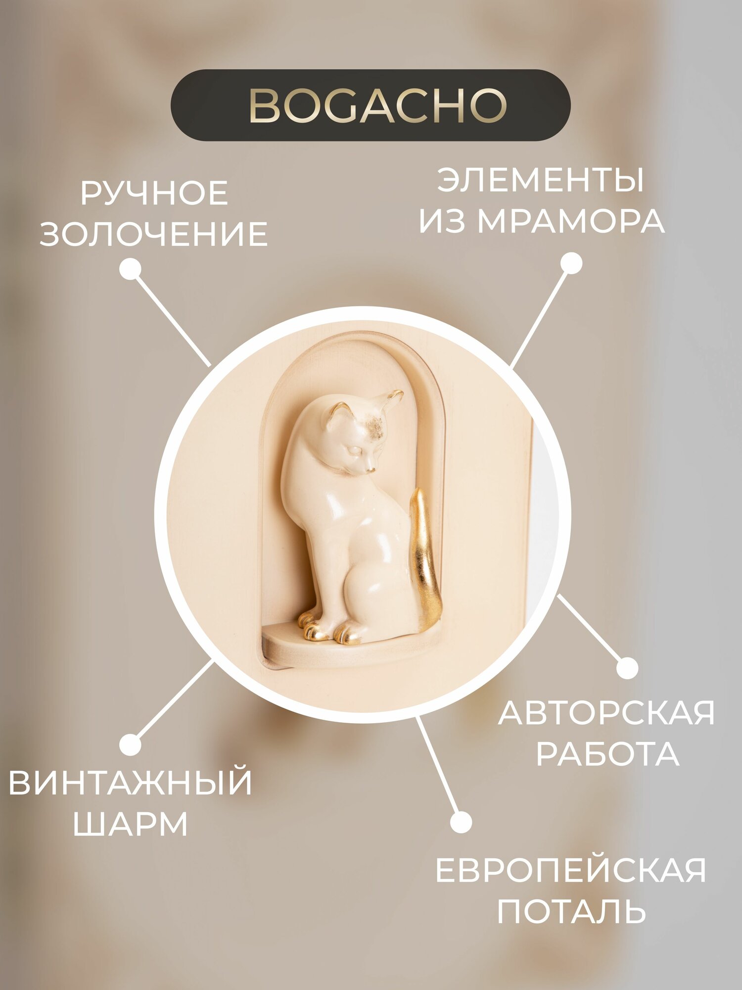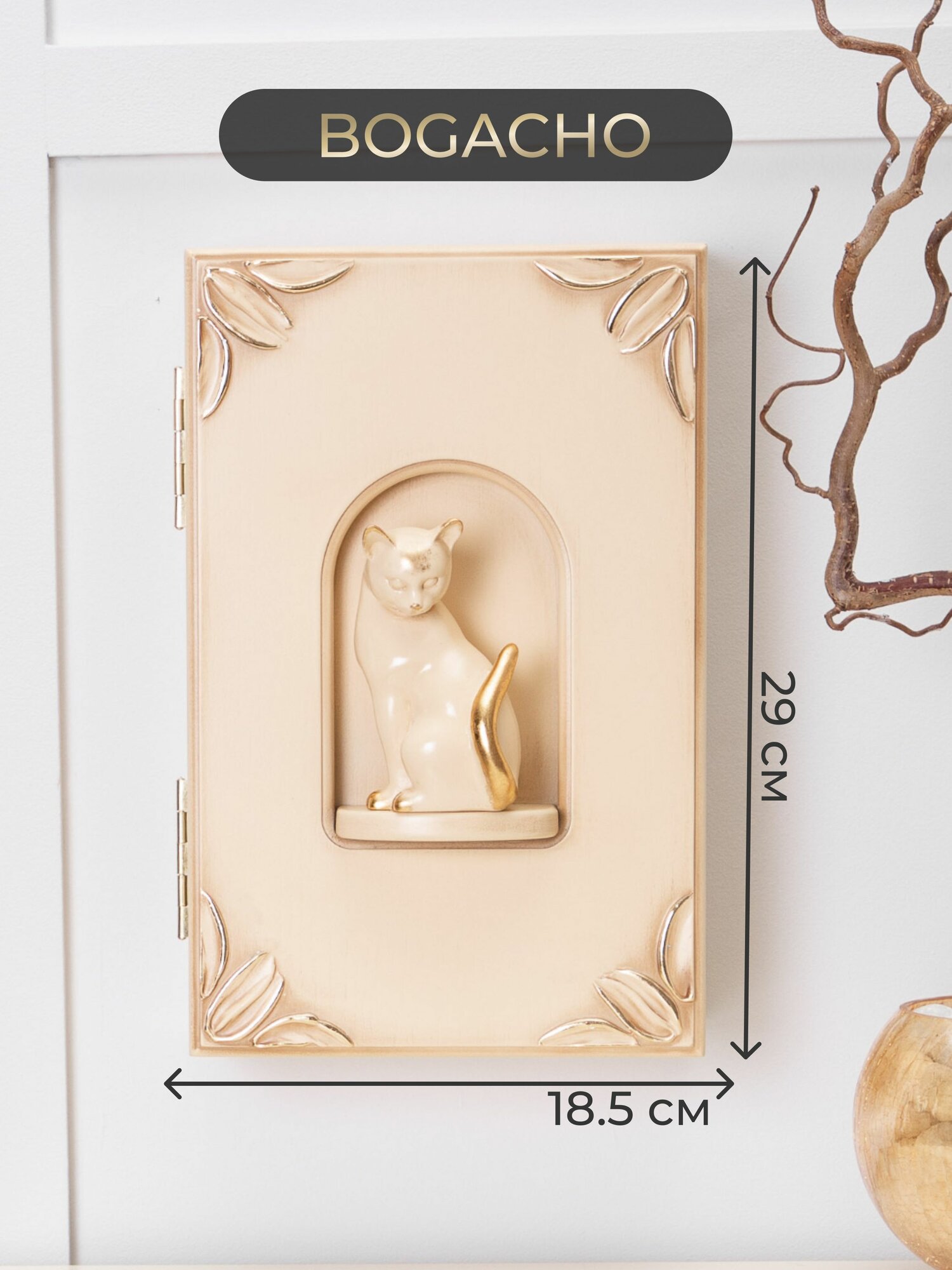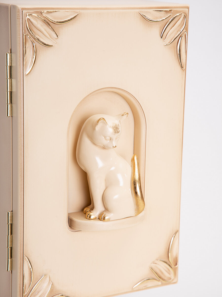 Купить Закрытая настенная ключница Bogacho Кошка Грация с крючками внутри и декоративной фигуркой кошки в прихожую и коридор