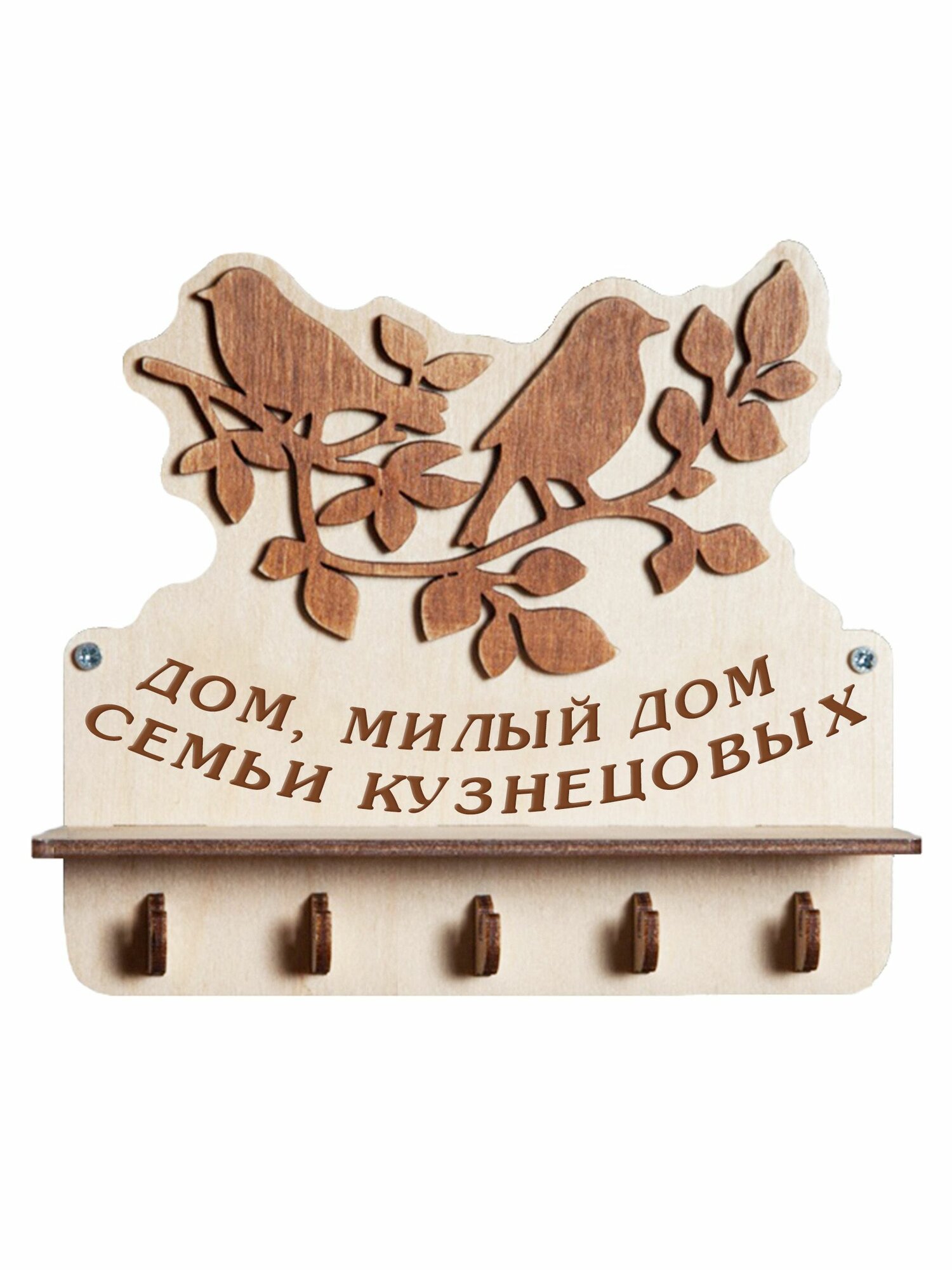 Ключница настенная именная с фамилией "Дом Милый Дом Семьи Кузнецовых" с птичками с любой надписью в прихожую интересное: