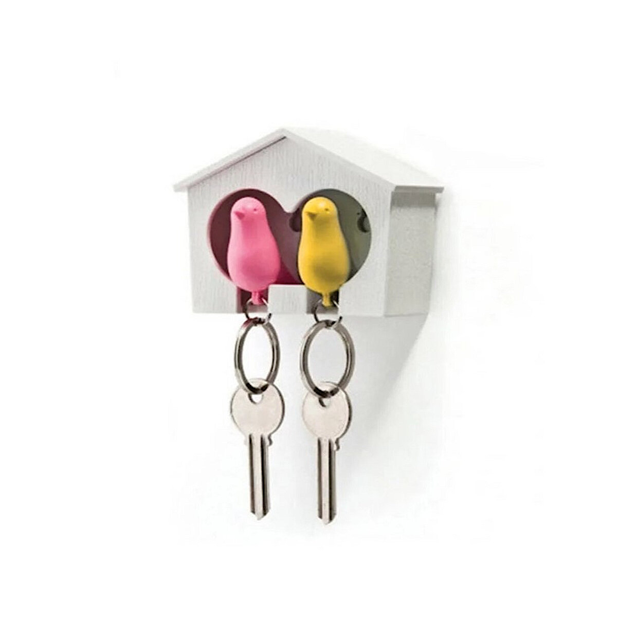 Ключница настенная с брелками розовая и оранжевая птички интересное: