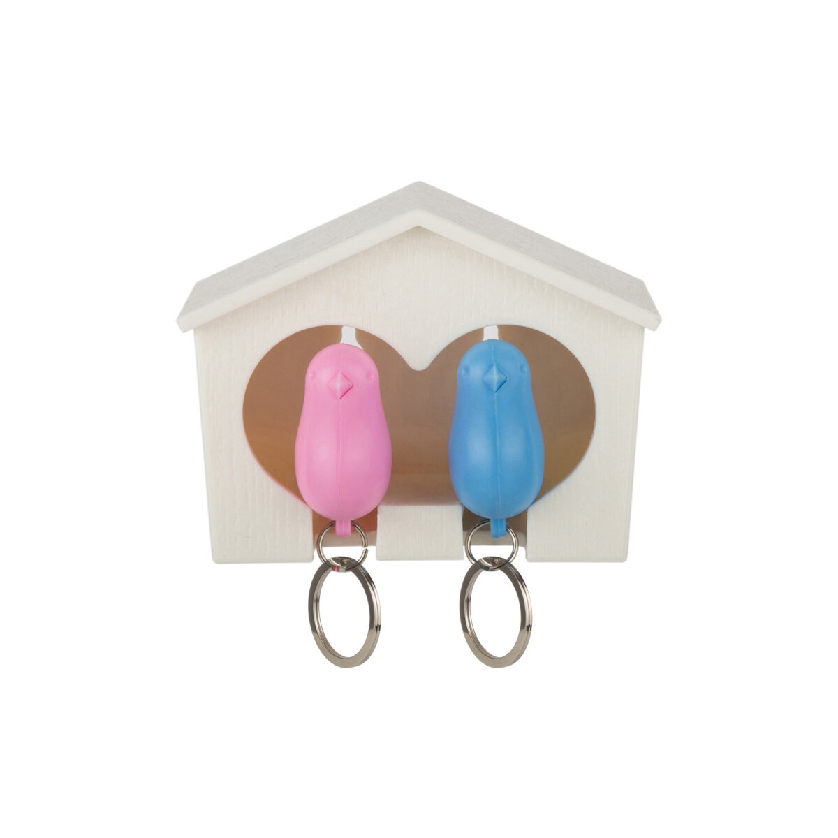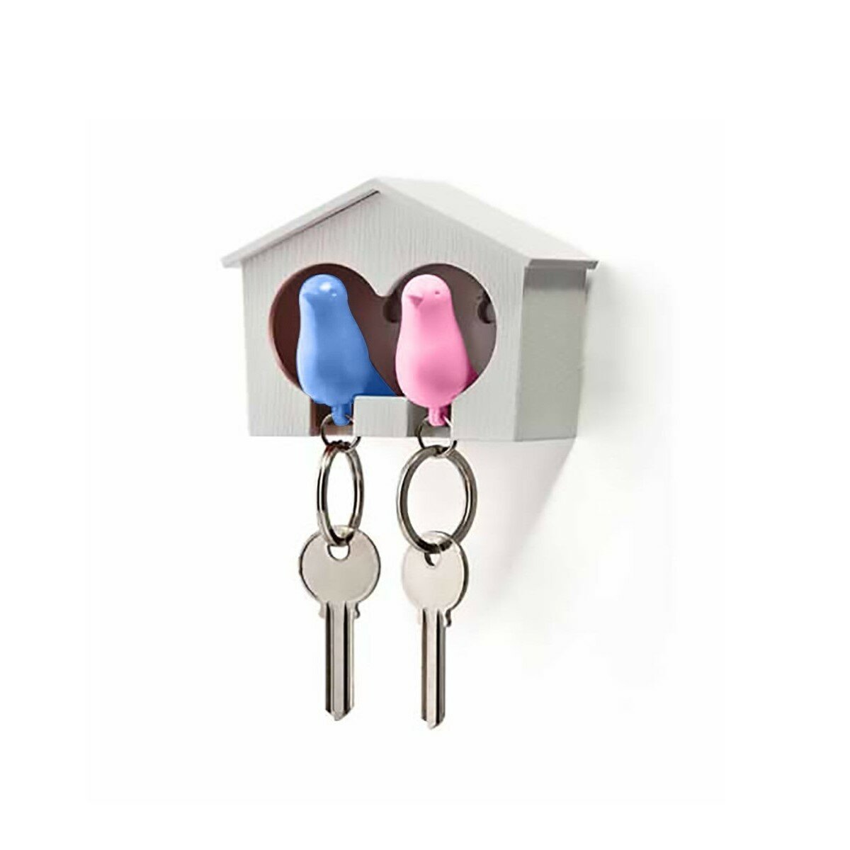 Ключница настенная с брелками голубая и розовая птички интересное: