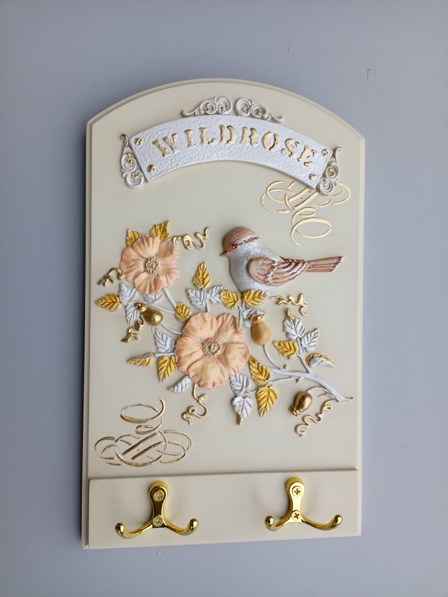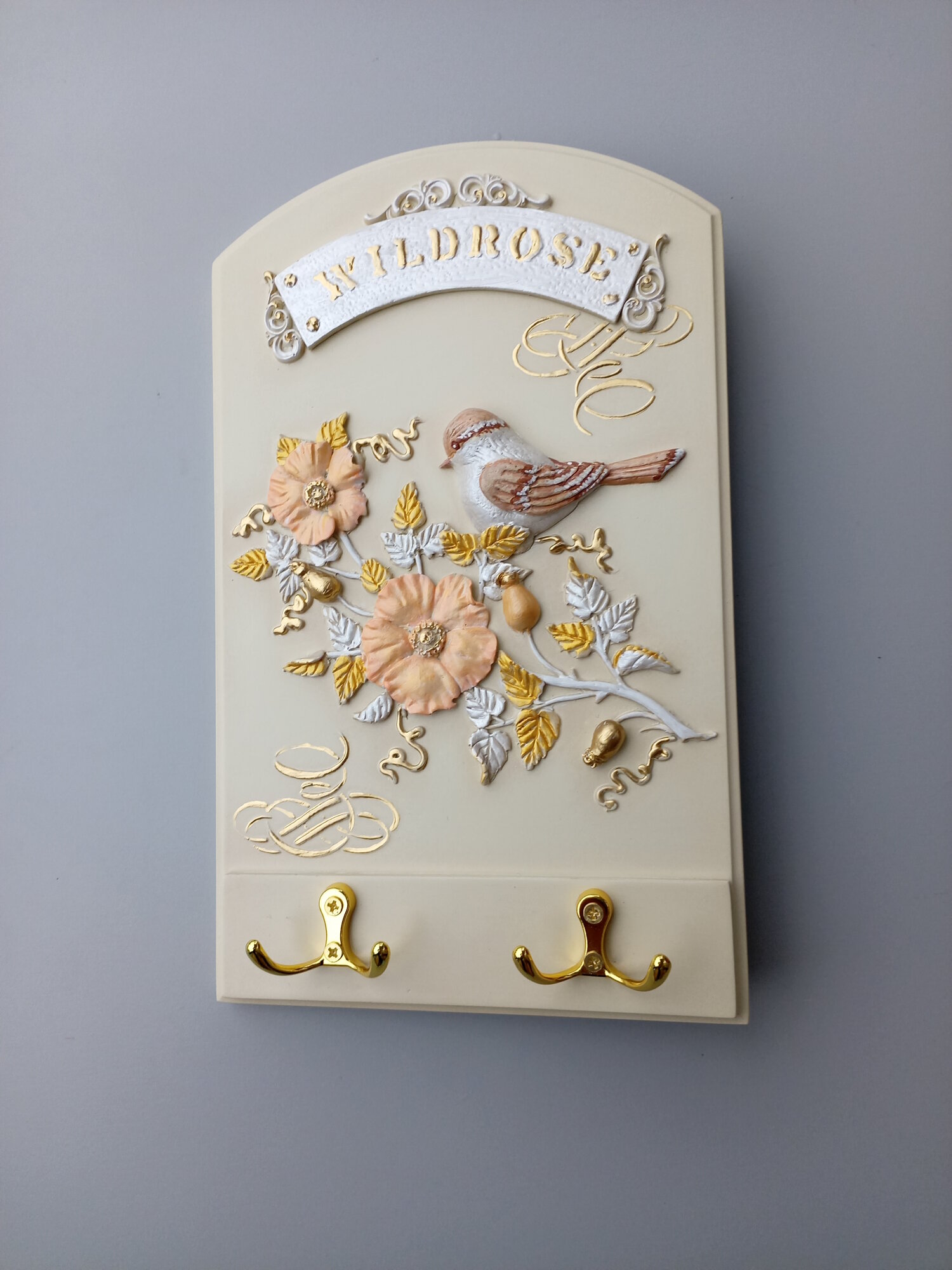 Декоративная ключница "На ветках шиповника". Авторская ручная работа. От мастерской "Золотая стрекоза". интересное: