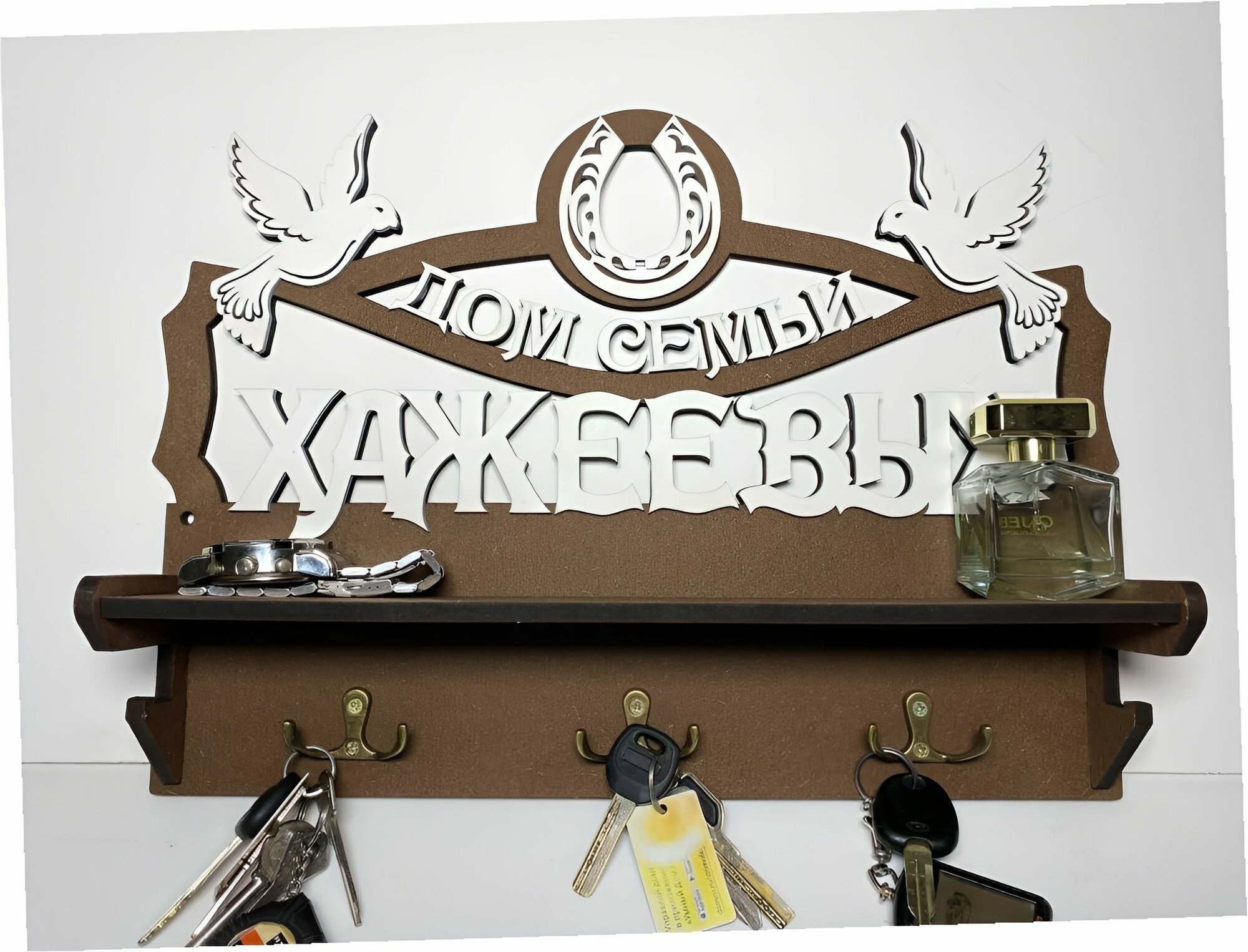 Ключница настенная в прихожую с фамилией именная "Дом Семьи Дмитриевых" на стену