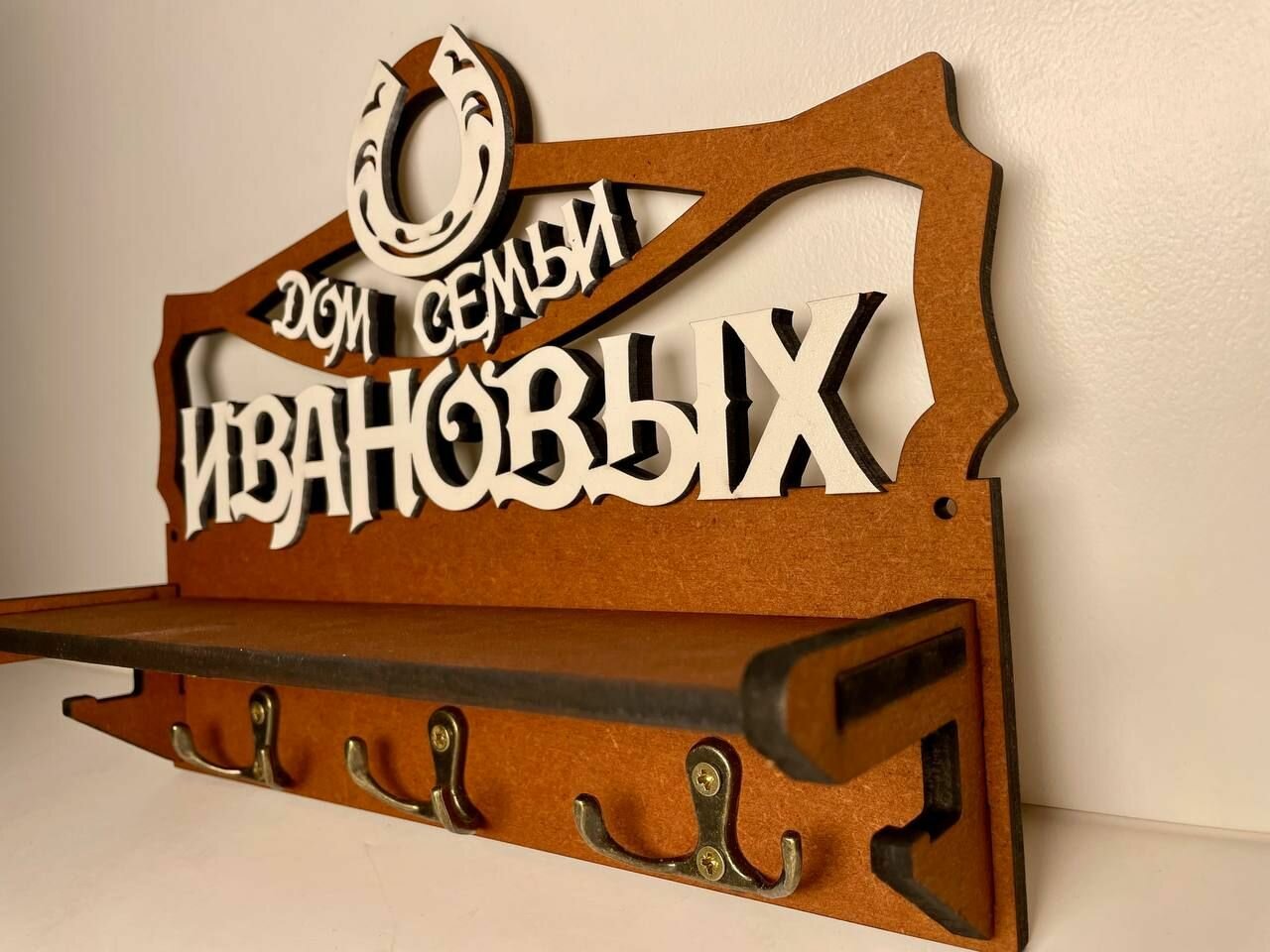 Ключница настенная в прихожую с фамилией именная "Дом Семьи Дмитриевых" на стену