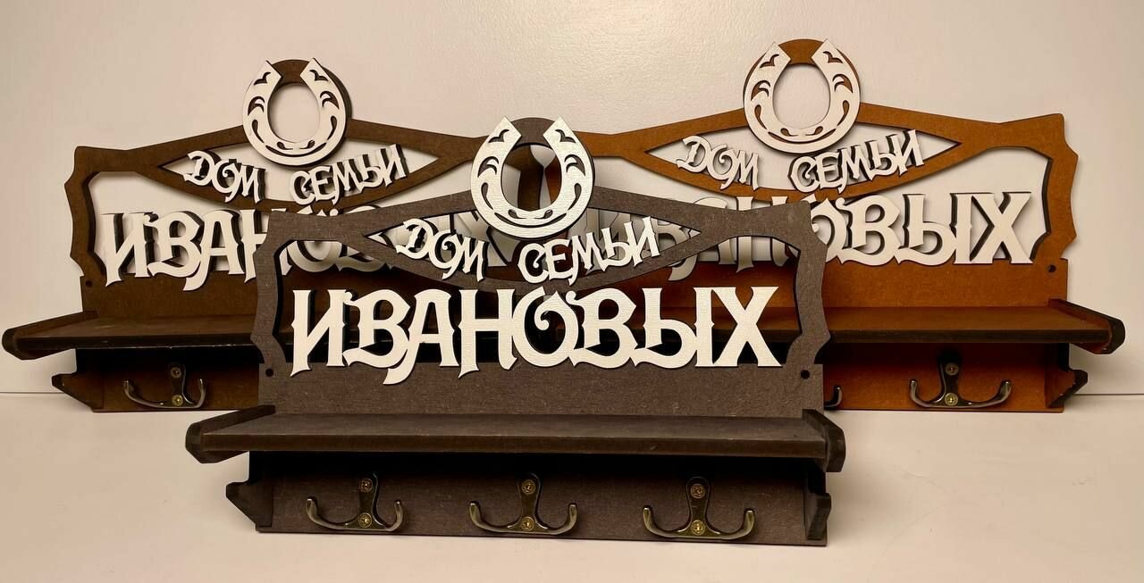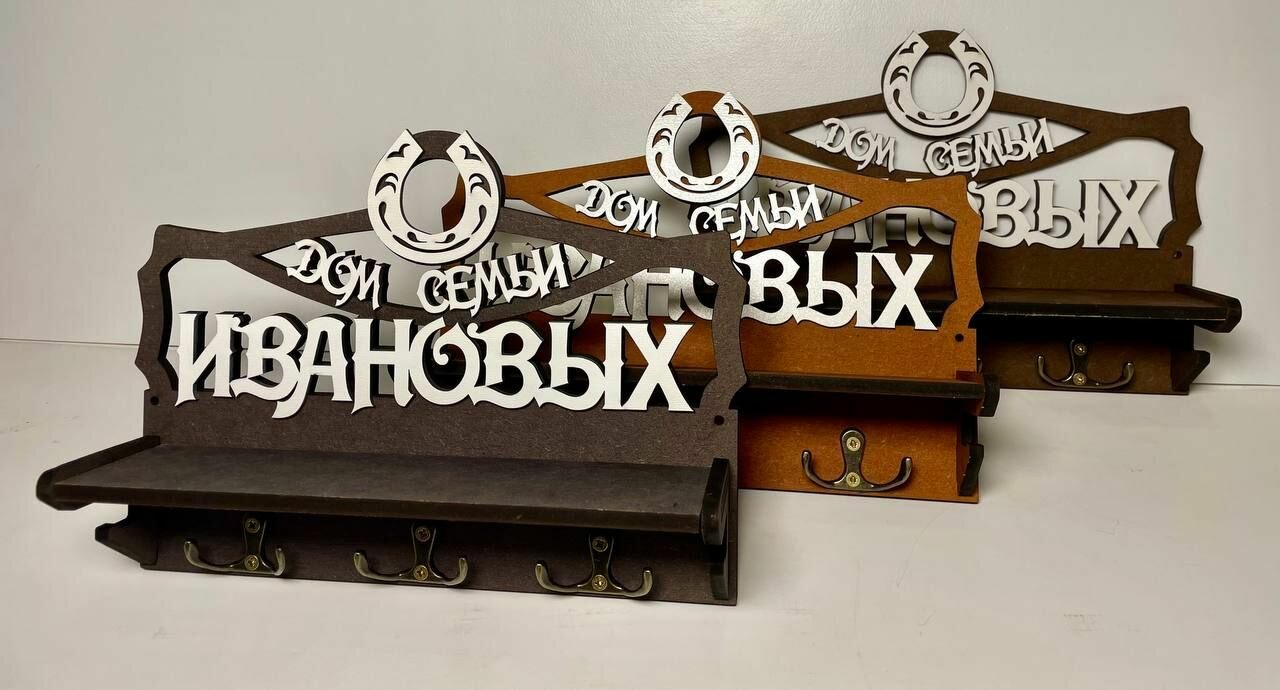 Ключница настенная в прихожую с фамилией именная "Дом Семьи Дмитриевых" на стену