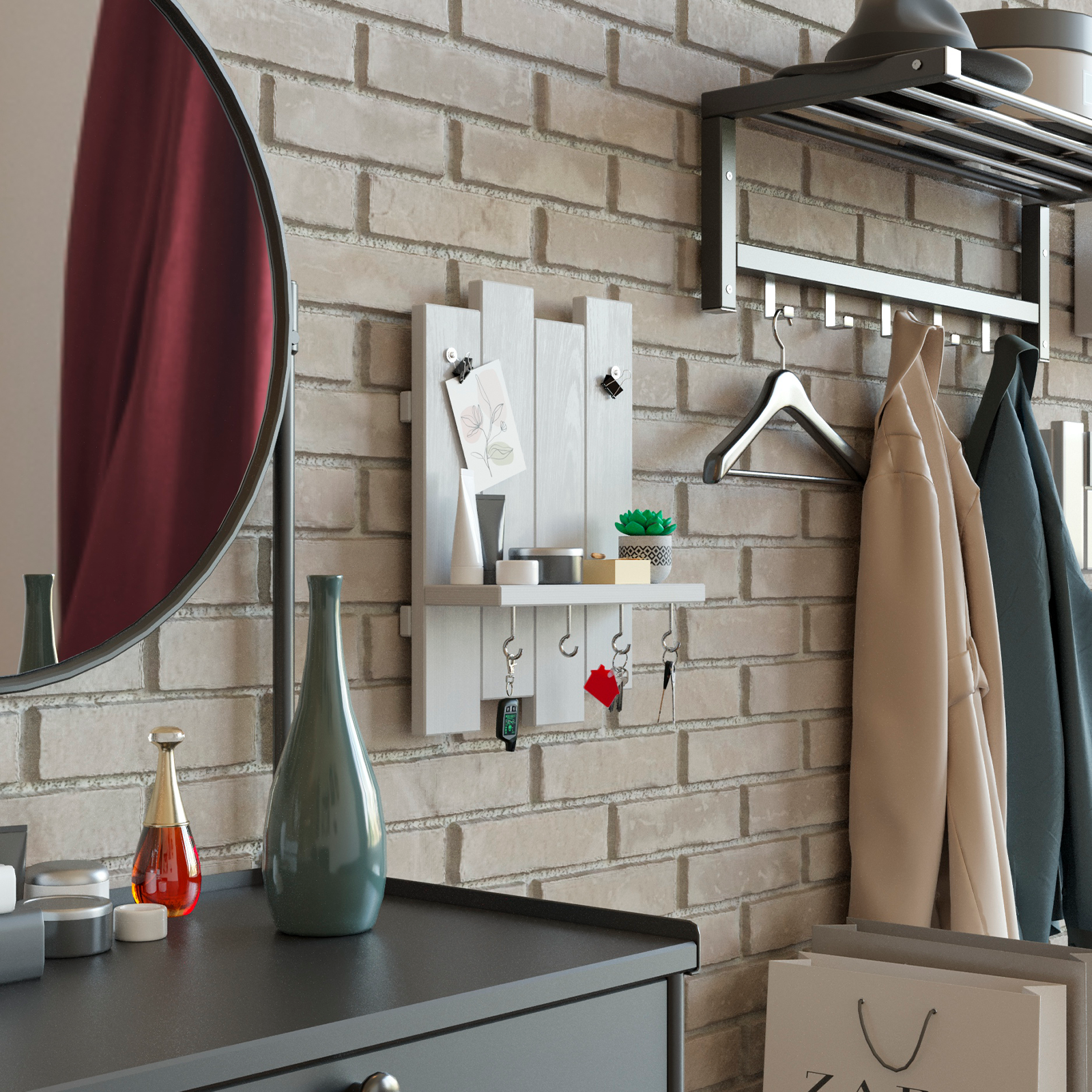Ключница настенная с полкой Sweet Sofa серый цвет