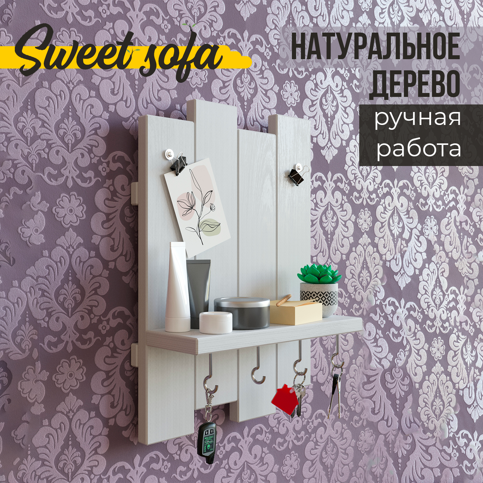 Ключница настенная с полкой Sweet Sofa белый цвет интересное: