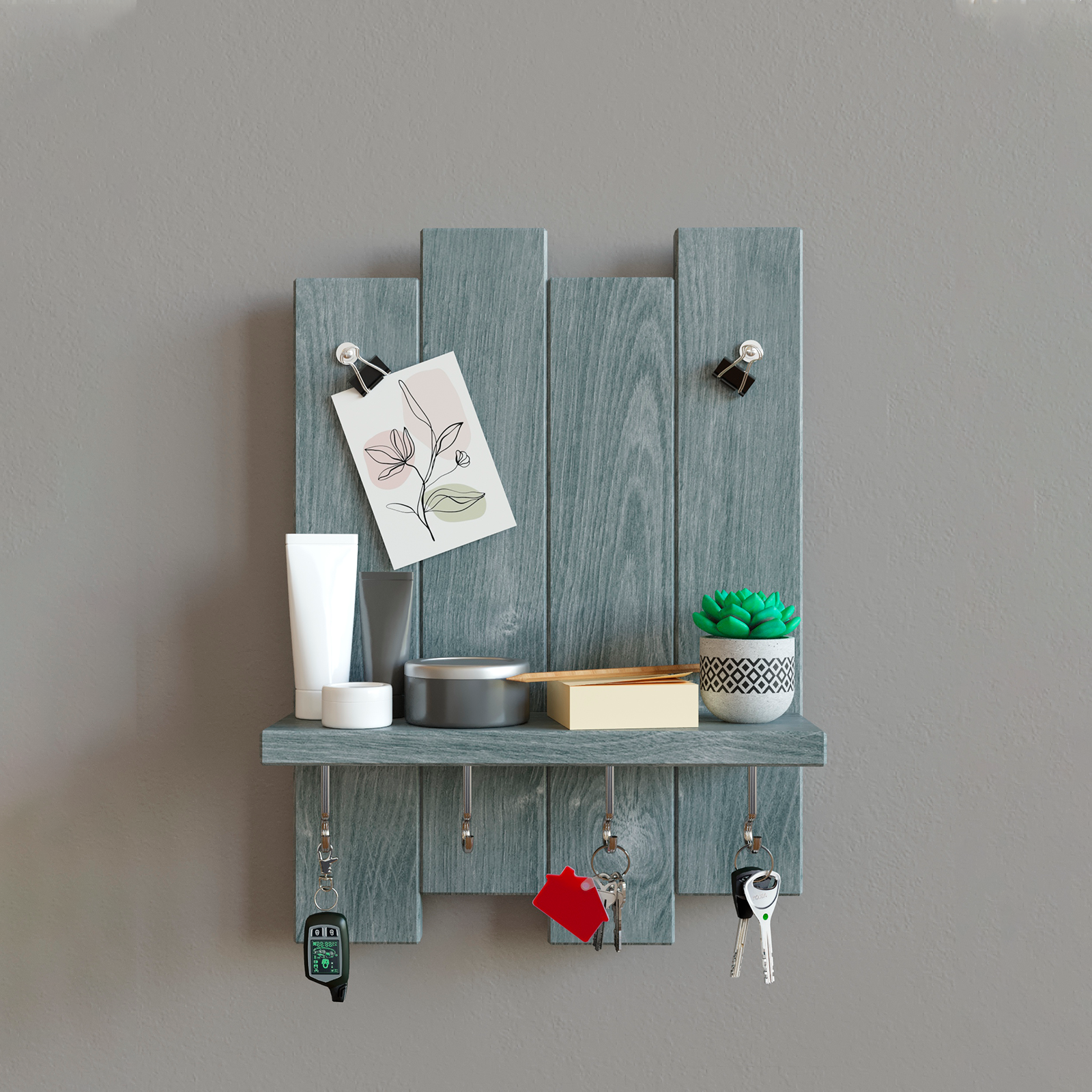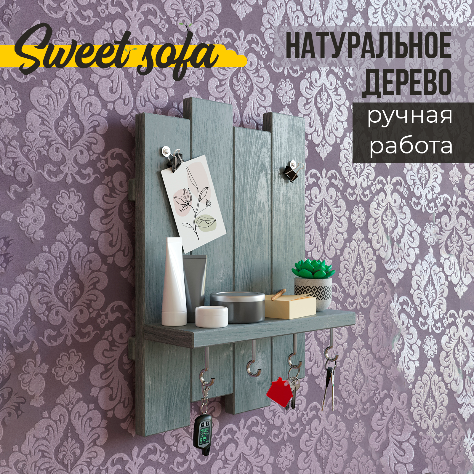 Ключница настенная с полкой Sweet Sofa серый цвет интересное: