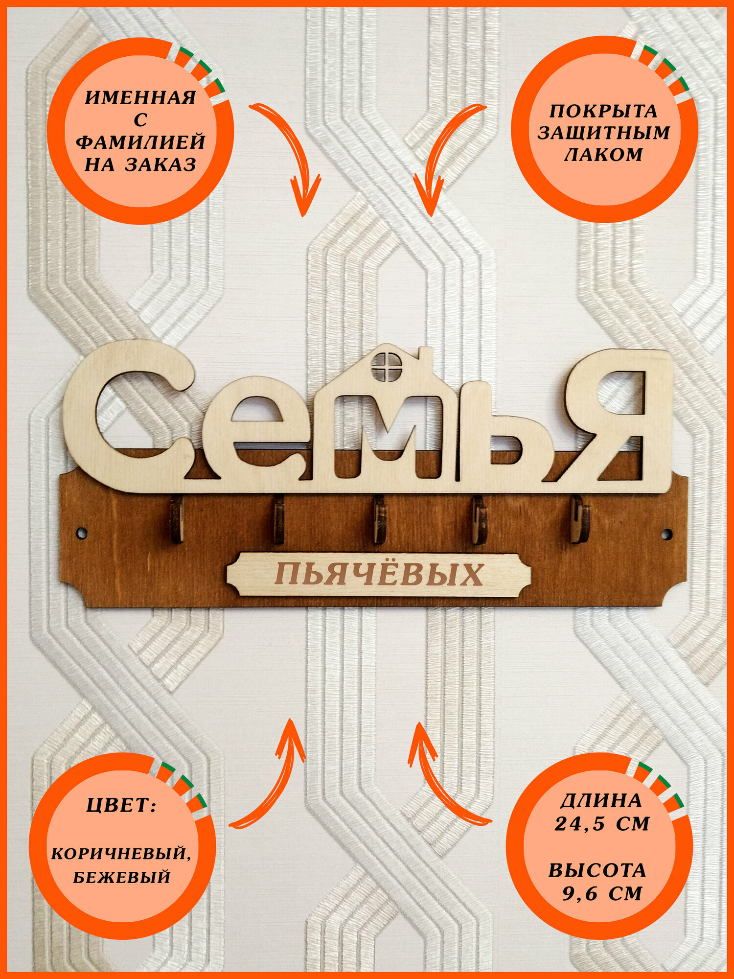 Ключница настенная именная с фамилией "Семья Пьячевых" в прихожую в дом интересное: