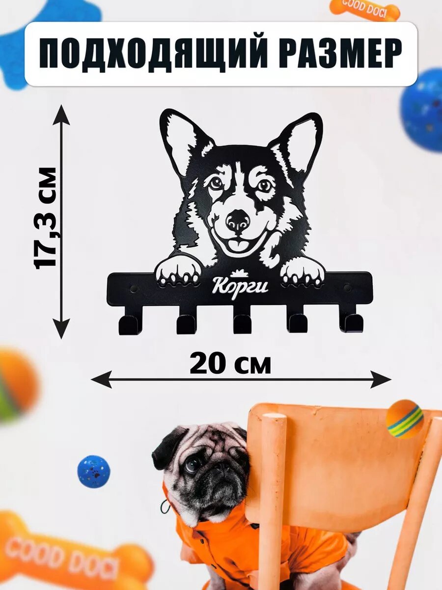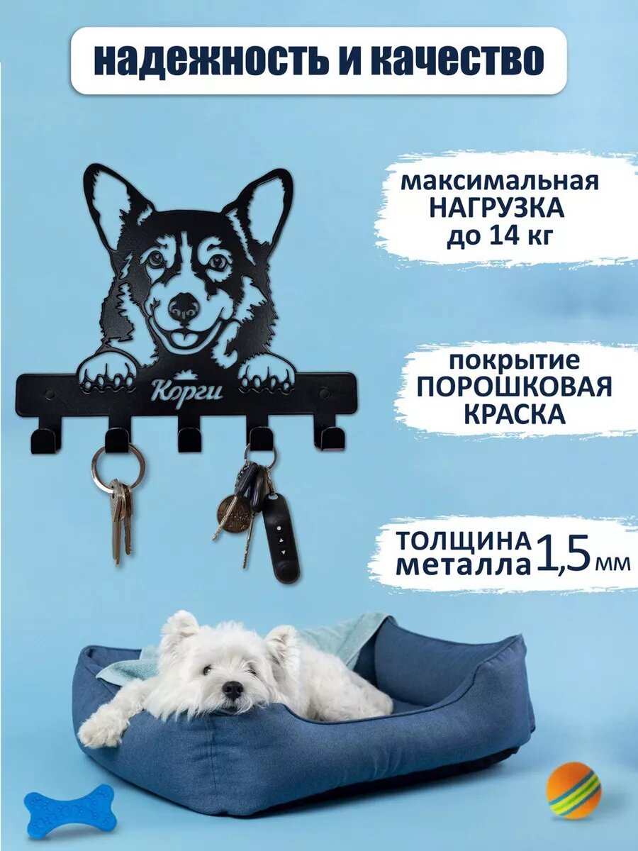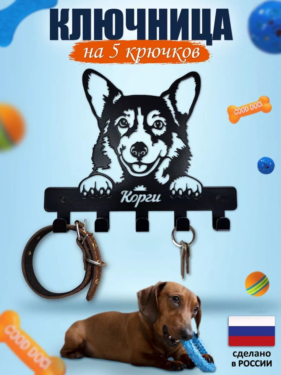 СохранитьКлючница настенная , металл, белая, для дома, 7 крючков, максимальная нагрузка 14 кг, Корги интересное: