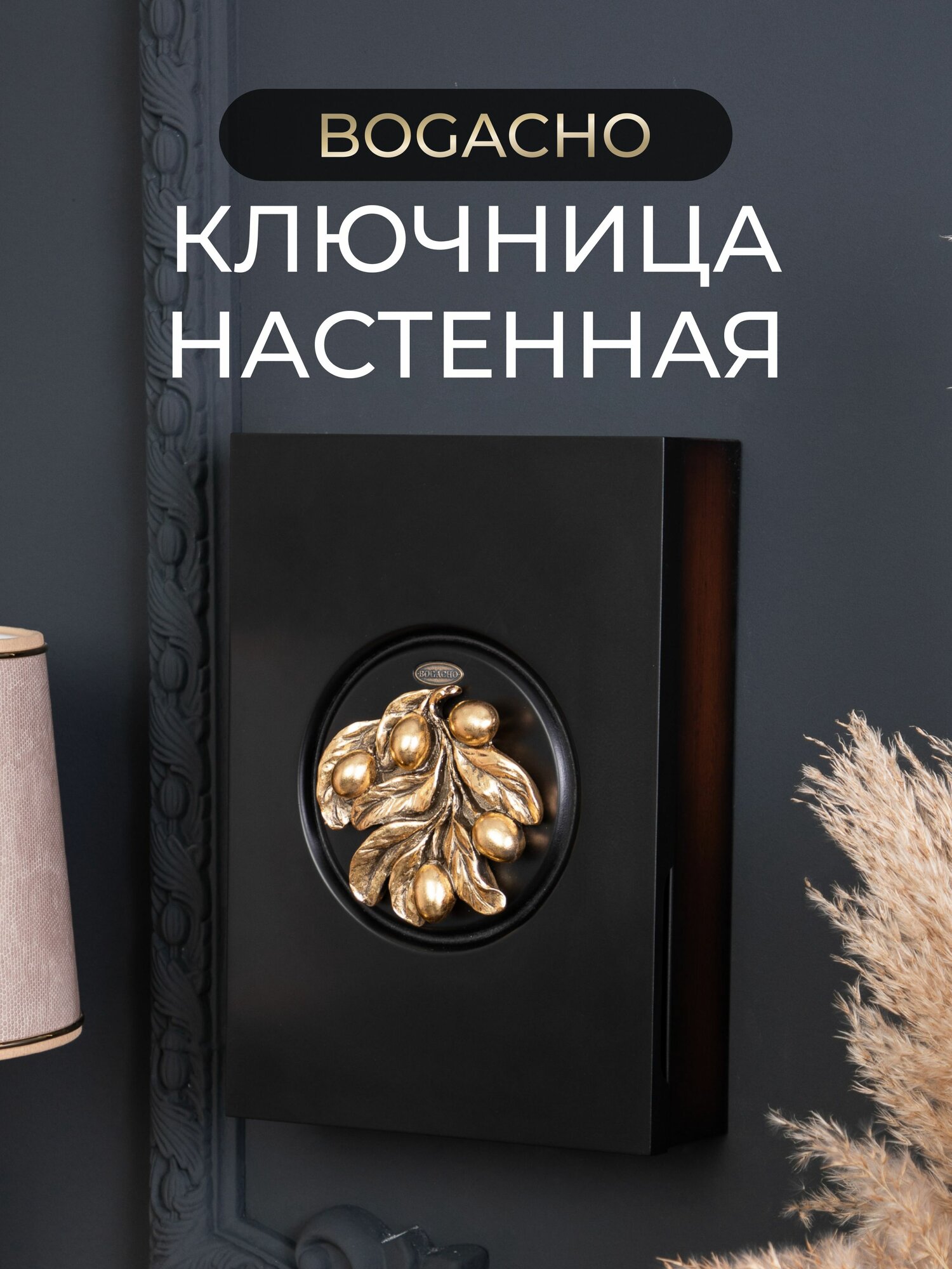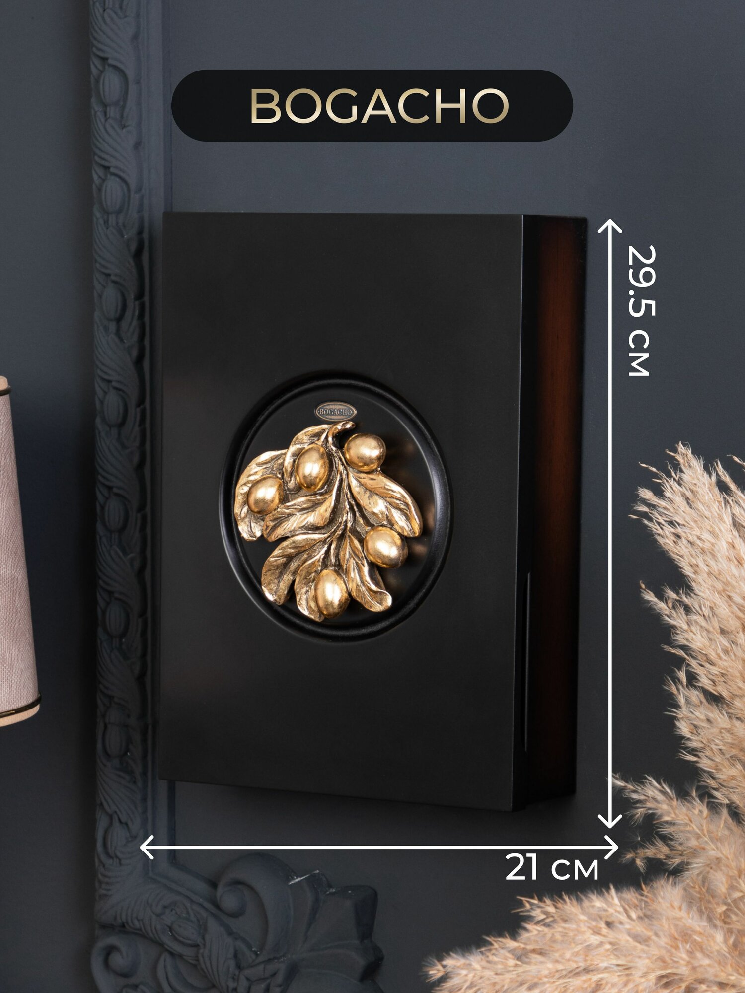 Купить Закрытая настенная ключница Bogacho Oliva Branch 2 с крючками внутри в прихожую и коридор
