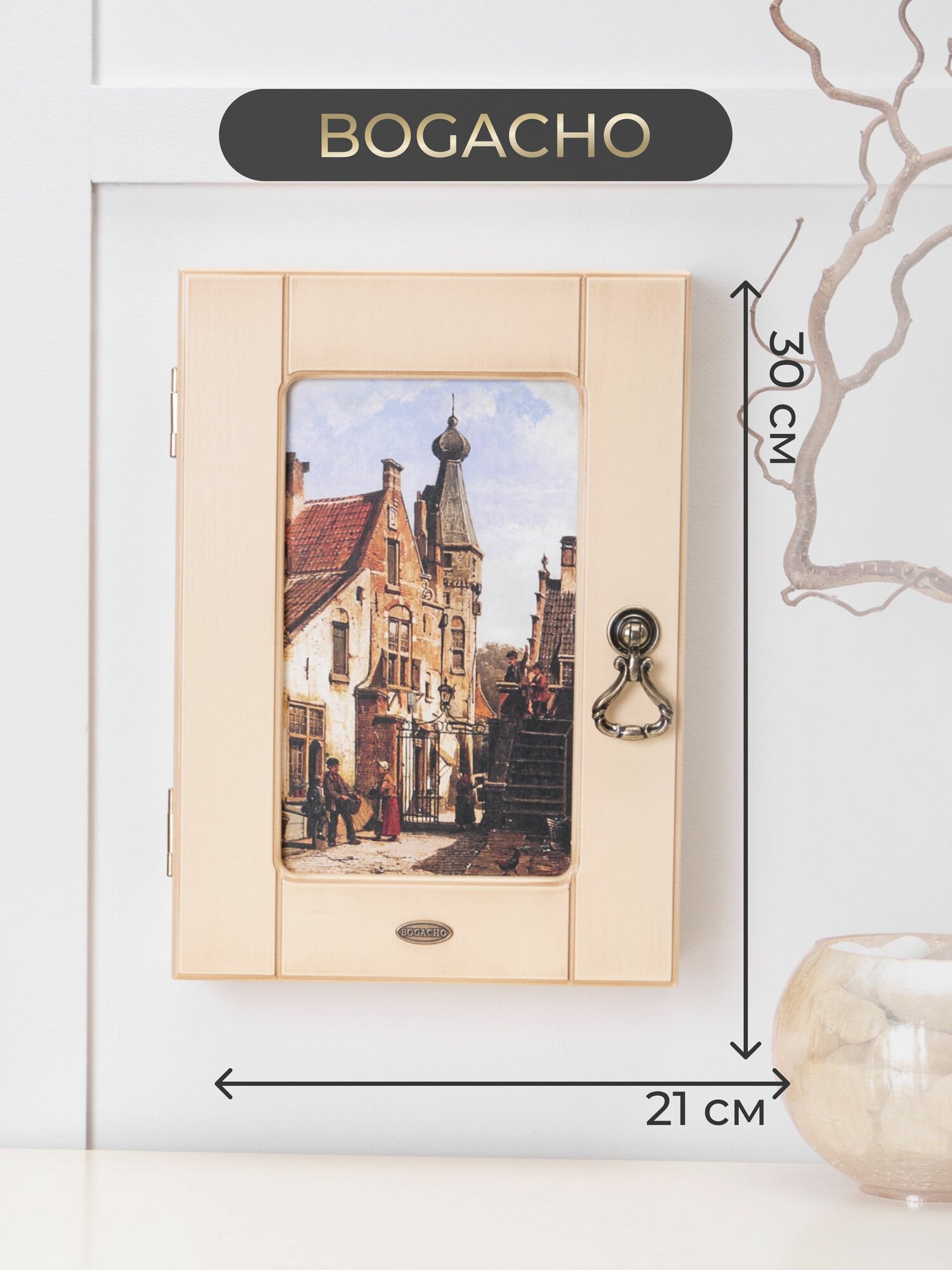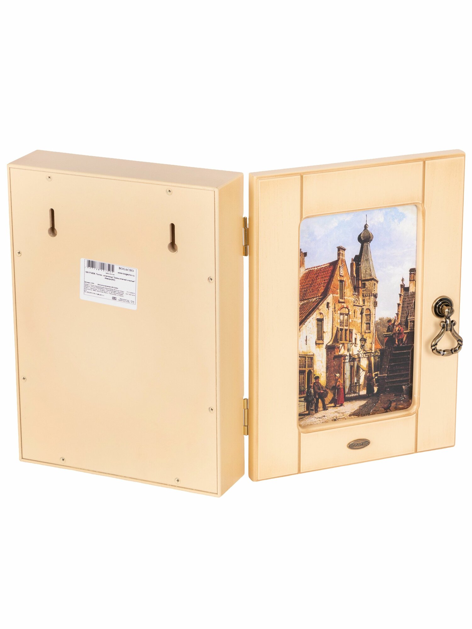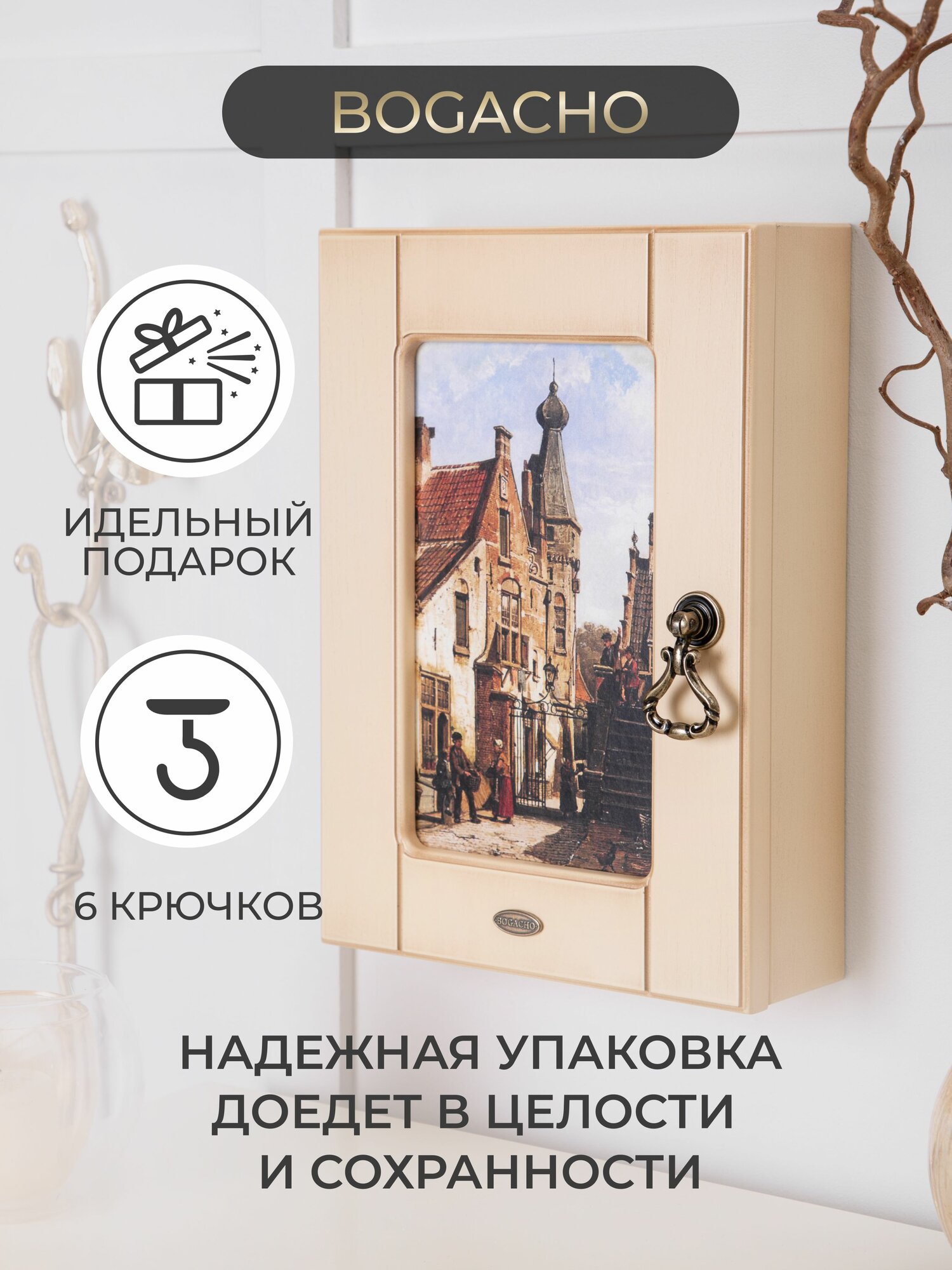 Закрытая настенная ключница Bogacho Семь ключей счастья с крючками внутри в прихожую и коридор интересное: