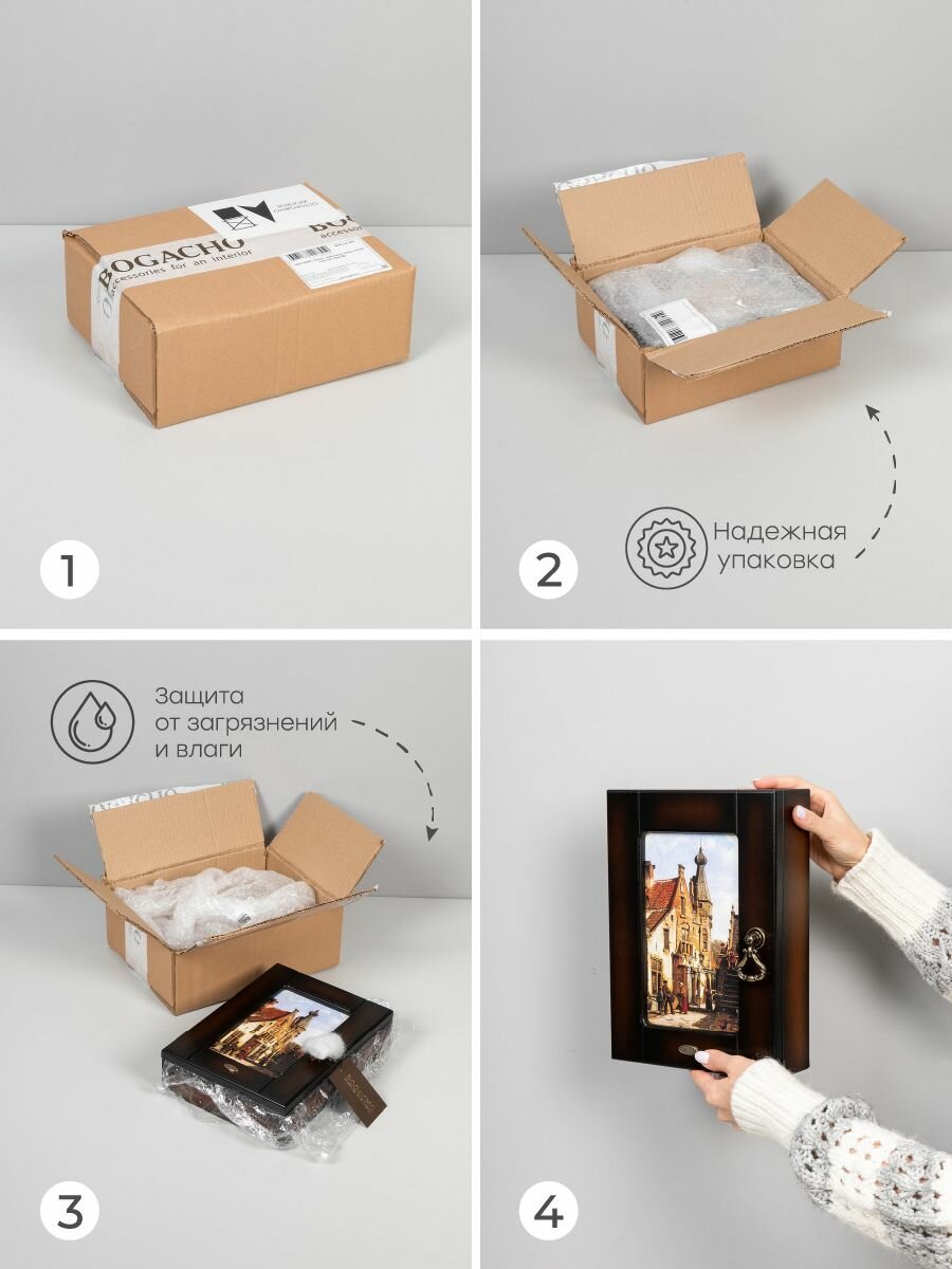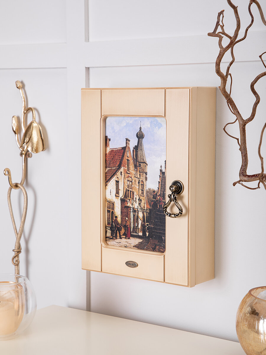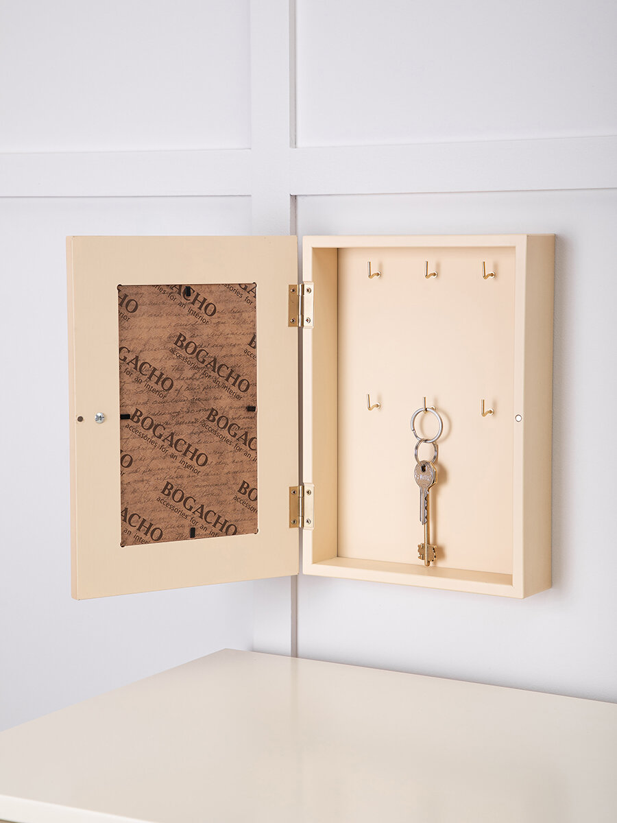 Закрытая настенная ключница Bogacho Семь ключей счастья с крючками внутри в прихожую и коридор интересное: