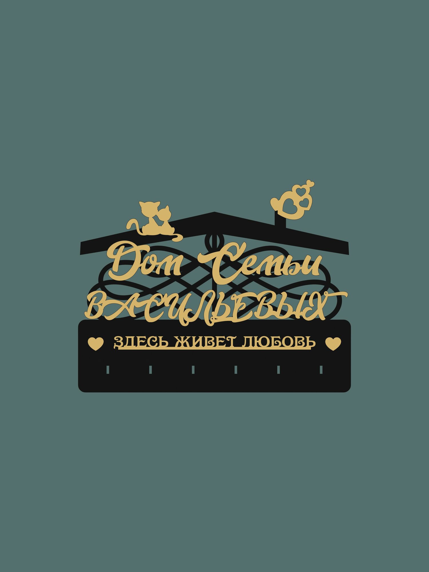 Купить Ключница настенная с фамилией именная "Дом Семьи Васильевых" в прихожую