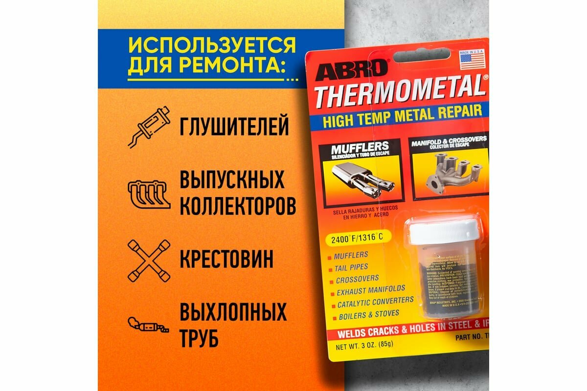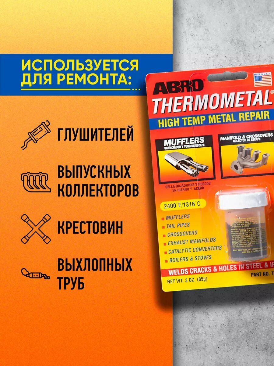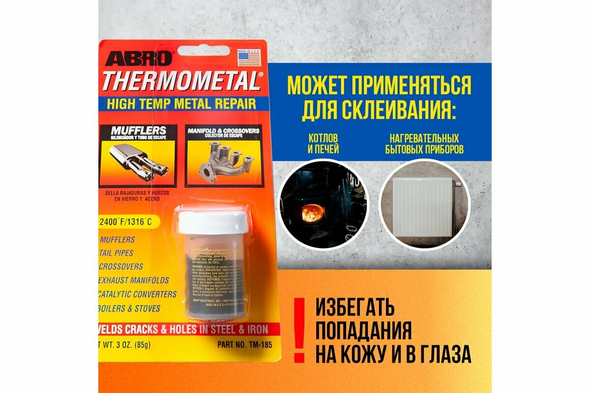 Универсальный клей-герметик для ремонта автомобиля ABRO Thermometal TM-185, 0.085 кг
