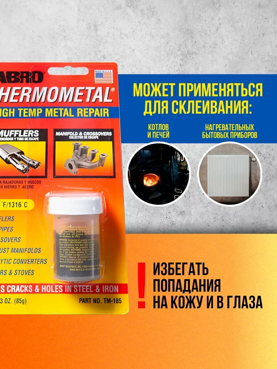 Холодная сварка ABRO Thermometal High-Temp Metal Repair, термостойкая, банка 85г, арт. TM-185
