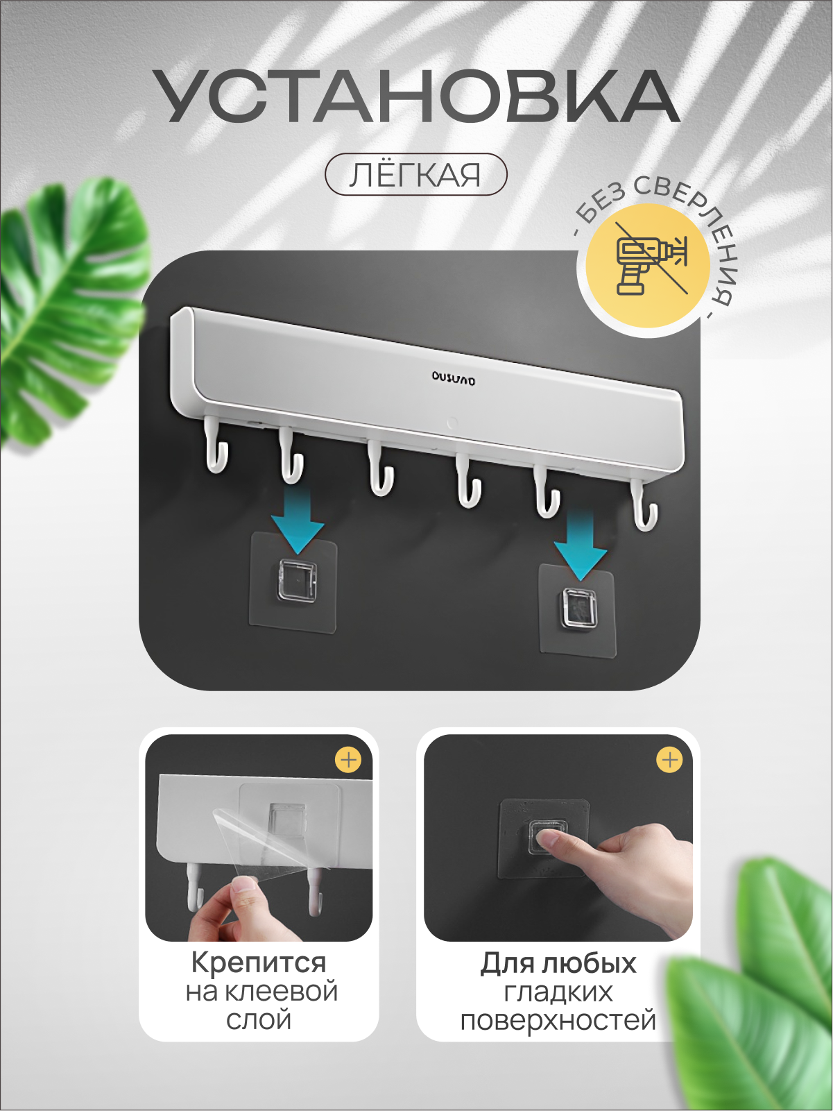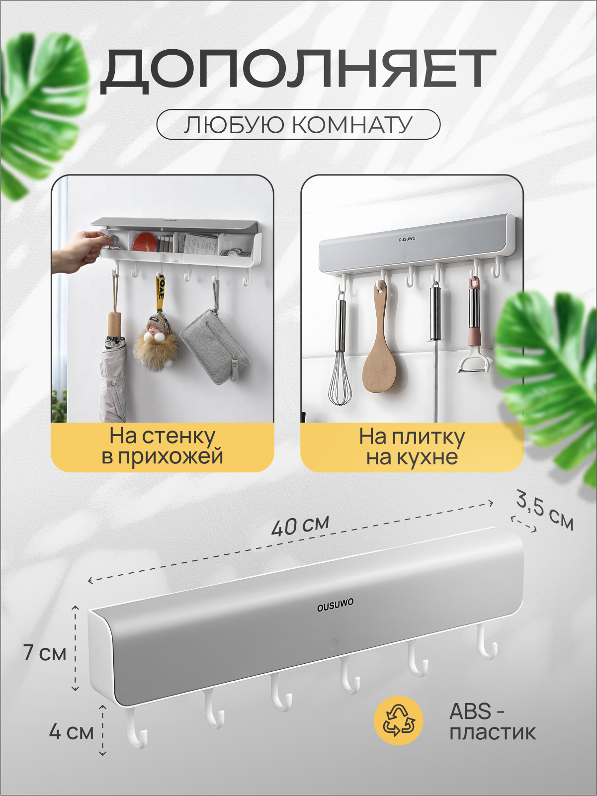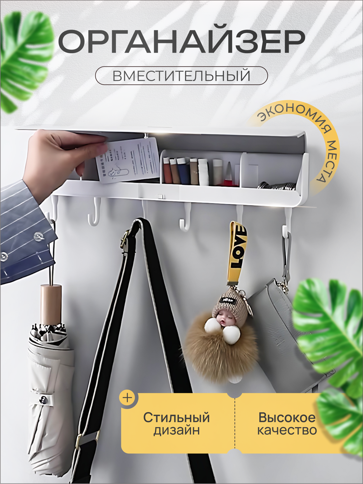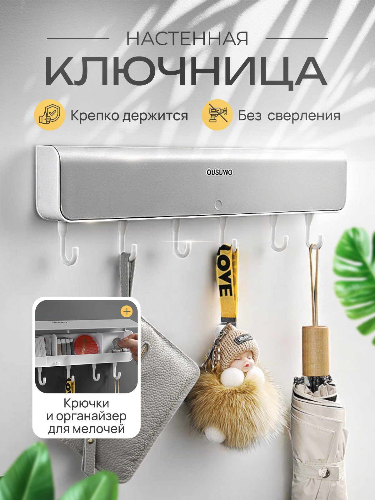 Ключница настенная с органайзером MALPACA самоклеящаяся, 6 подвижных крючков интересное: