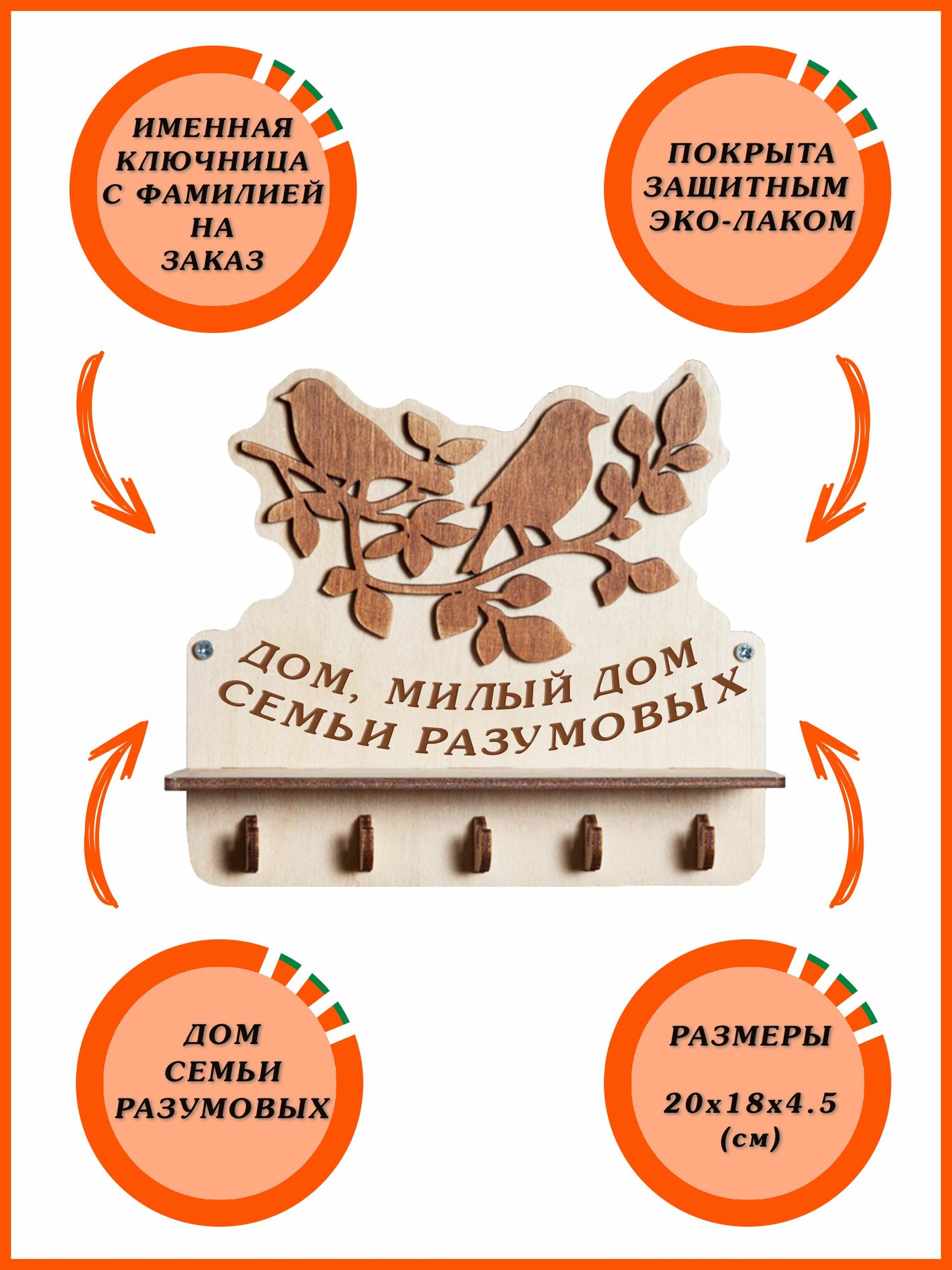 Ниже Вы можете прочитать отзывы на Ключница настенная именная с фамилией "Дом Милый Дом Семьи Разумовых" с птичками с любой надписью в прихожую, ознакомится с подробными характеристиками, посмотреть интересные обзоры и фотографии на Ключница настенная именная с фамилией "Дом Милый Дом Семьи Разумовых" с птичками с любой надписью в прихожую.