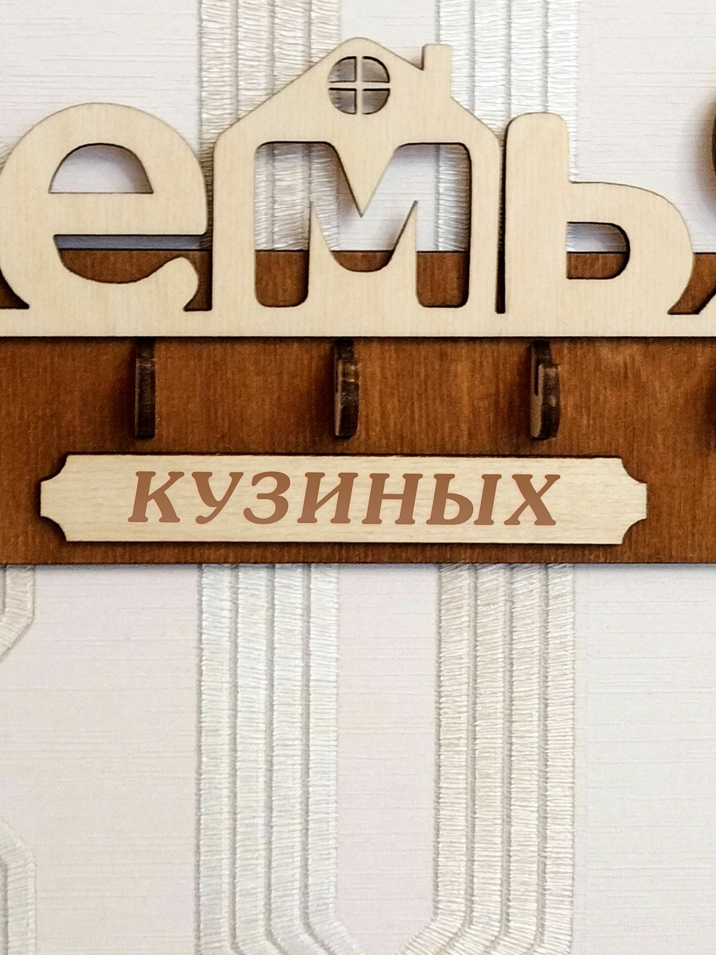 Ключница настенная в прихожую с фамилией именная "Дом Семьи Дмитриевых" на стену