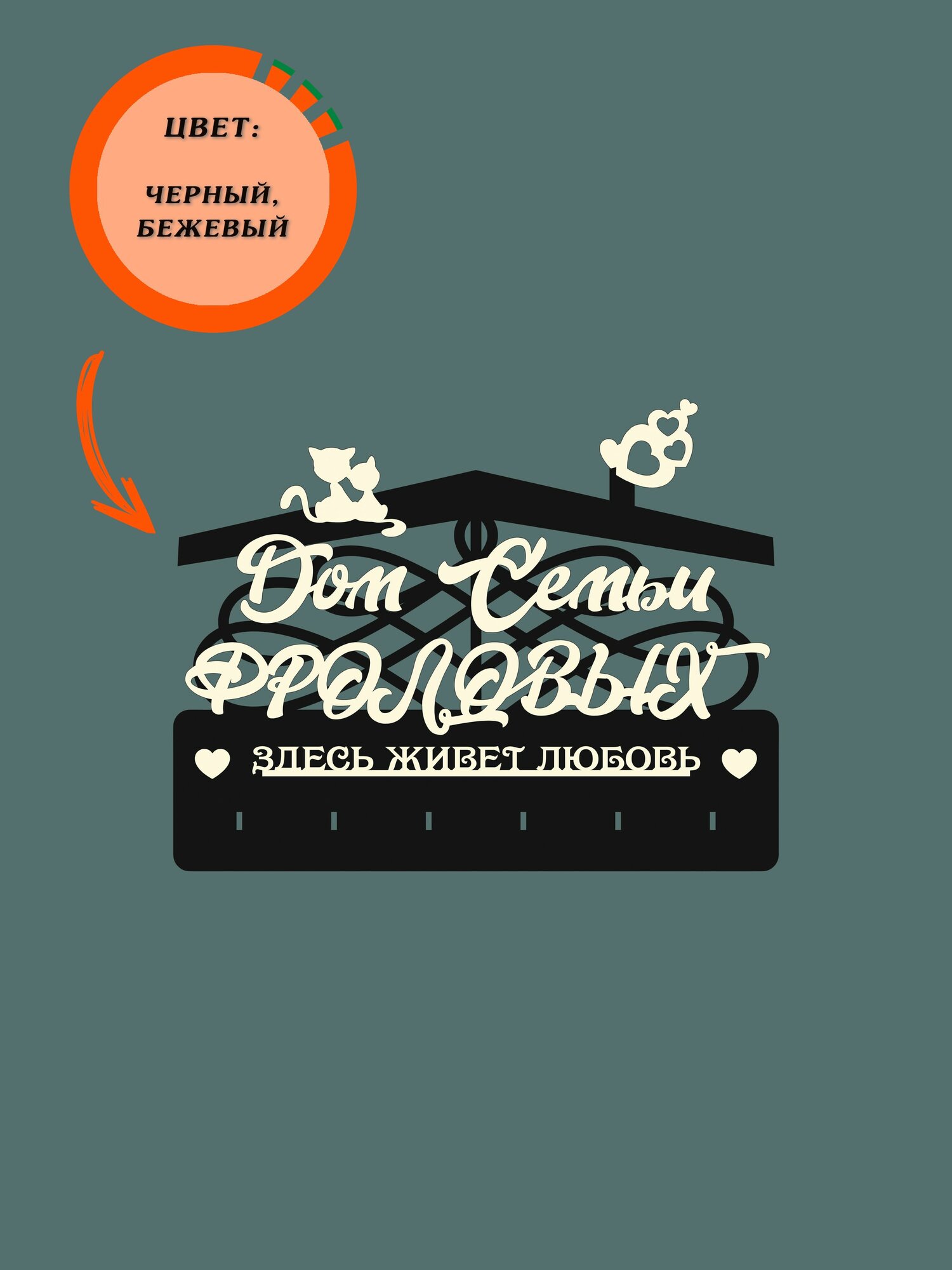 Ключница настенная в прихожую с фамилией именная "Дом Семьи Дмитриевых" на стену