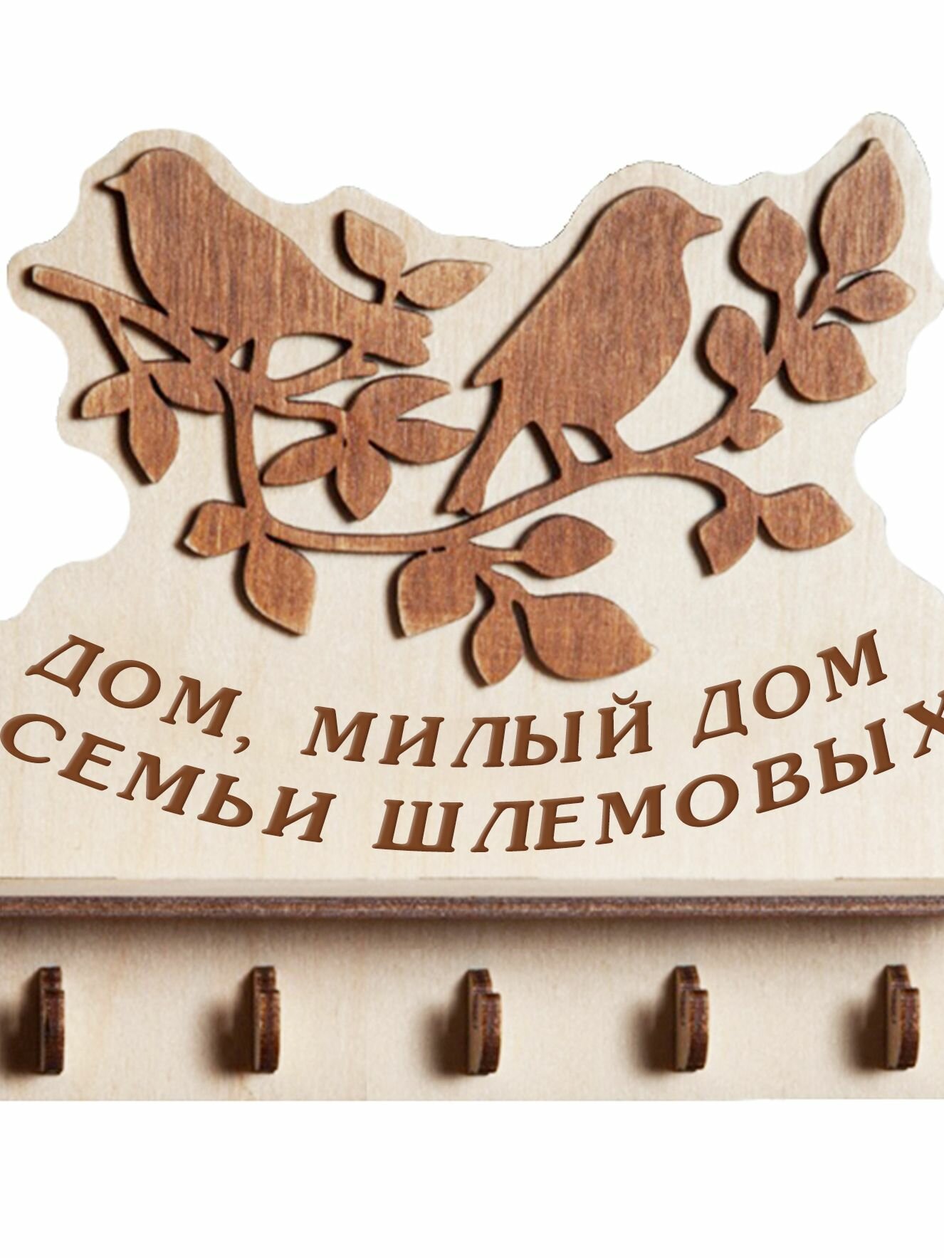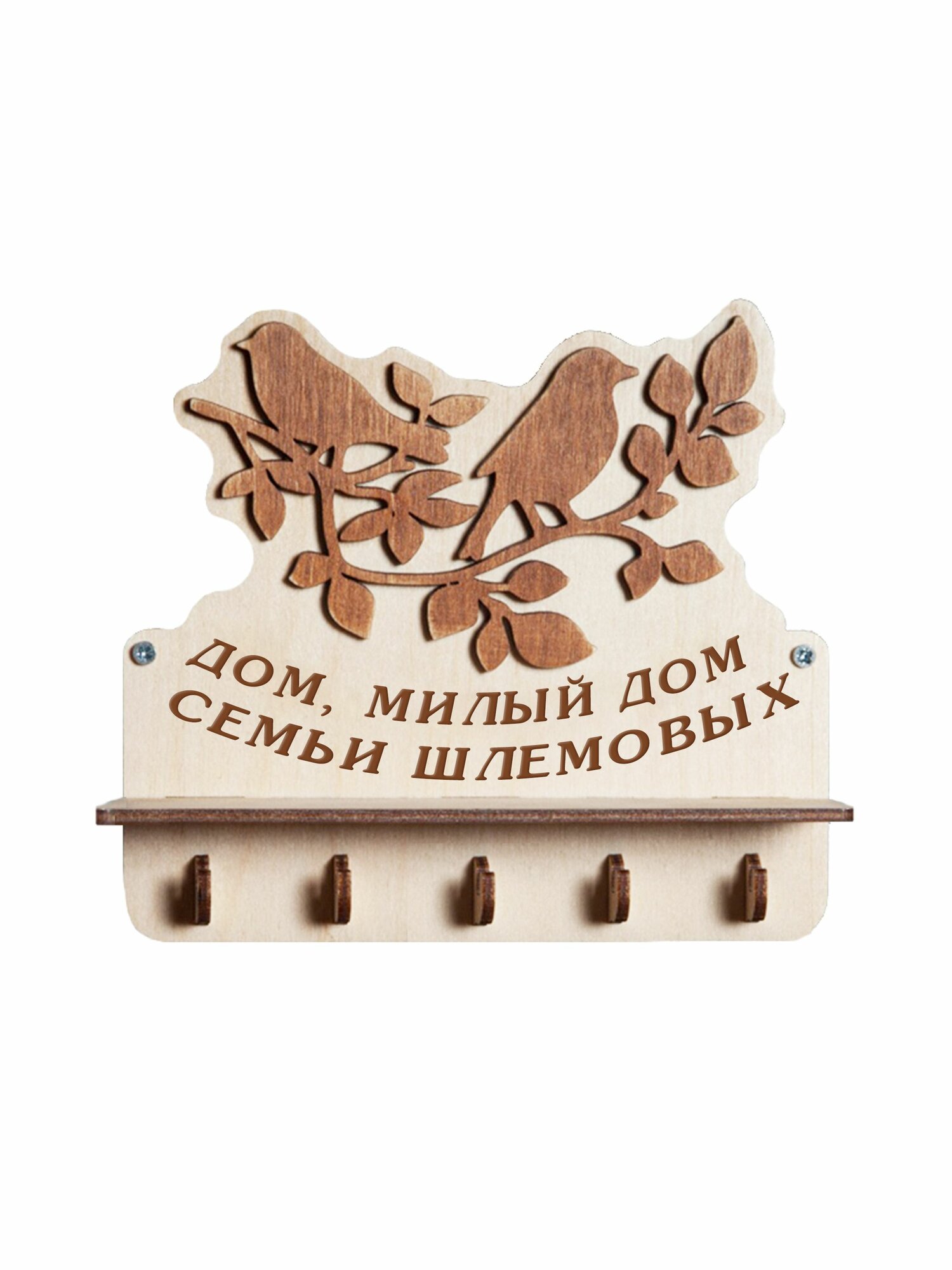 Купить Ключница настенная именная с фамилией "Дом Милый Дом Семьи Шлемовых" с птичками с любой надписью в прихожую
