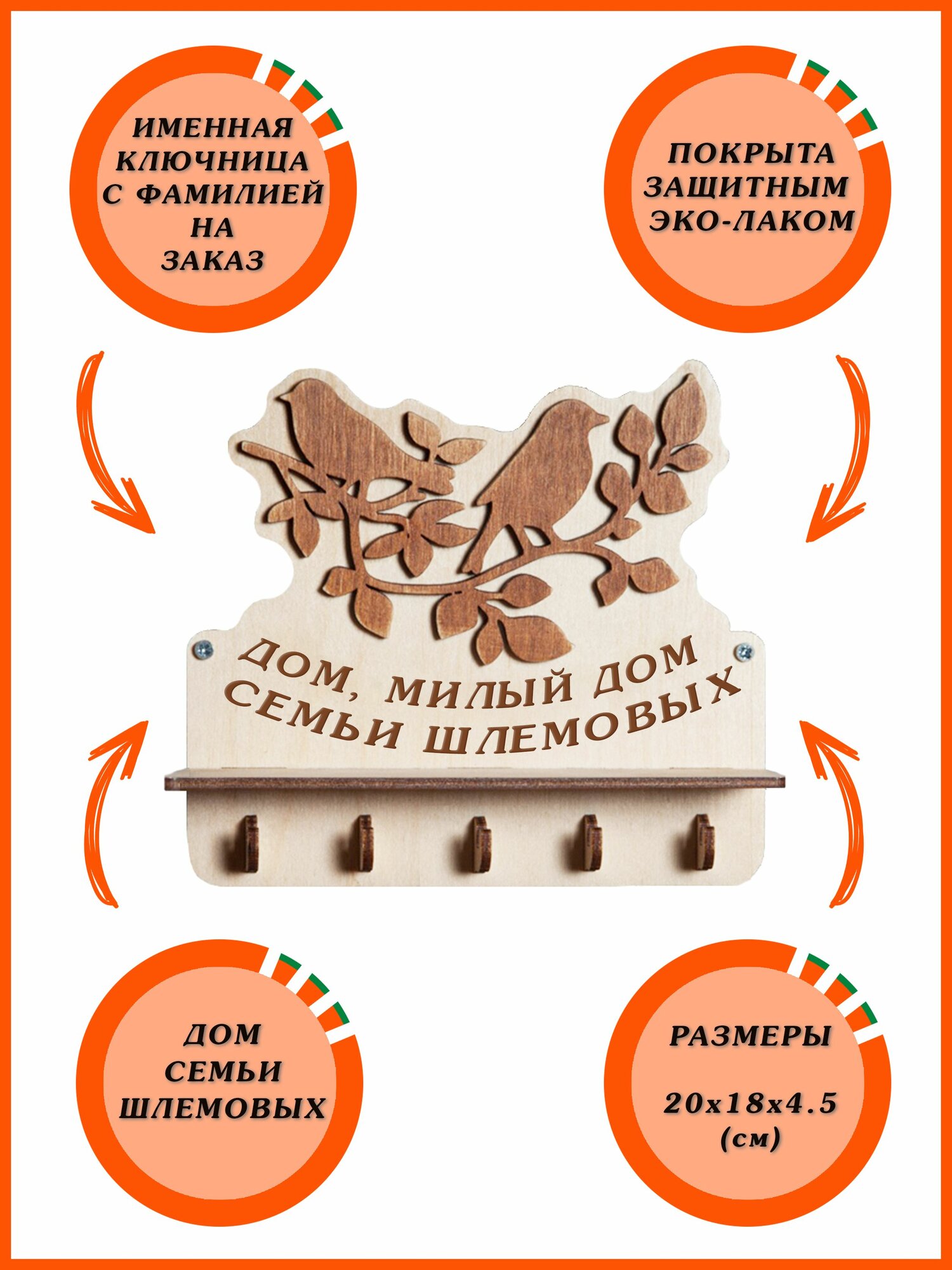 Ключница настенная именная с фамилией "Дом Милый Дом Семьи Шлемовых" с птичками с любой надписью в прихожую интересное: