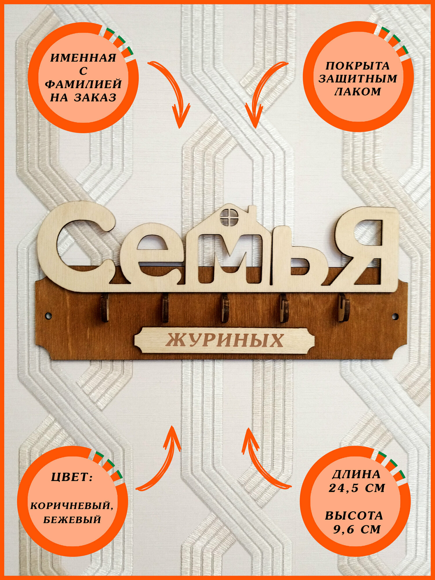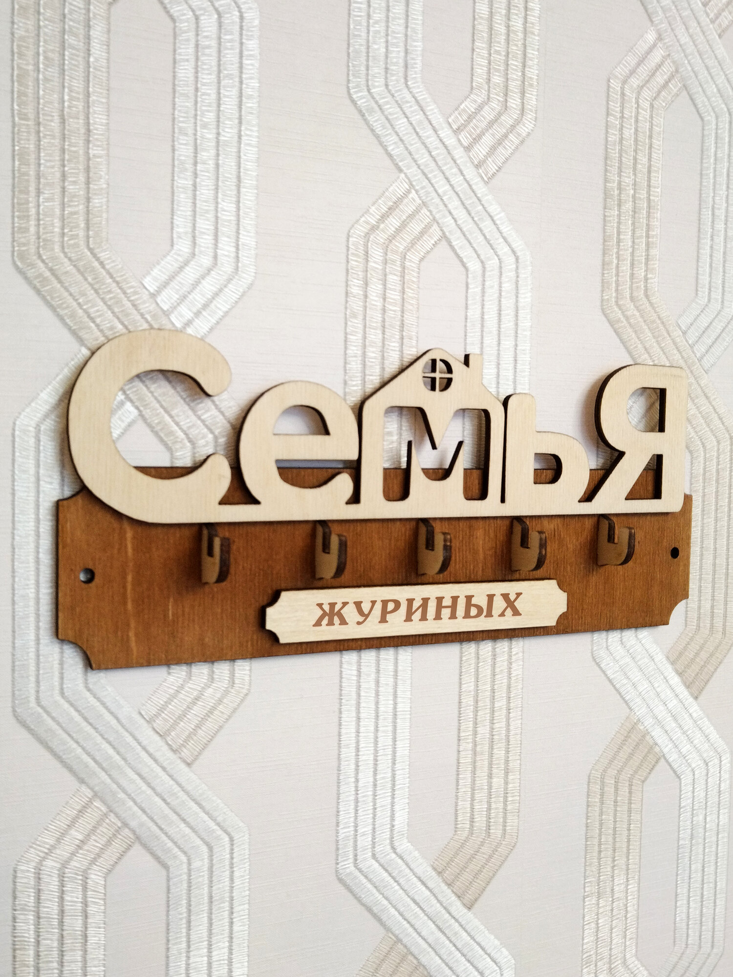 Ключница настенная именная с фамилией "Семья Журиных" в прихожую в дом интересное:
