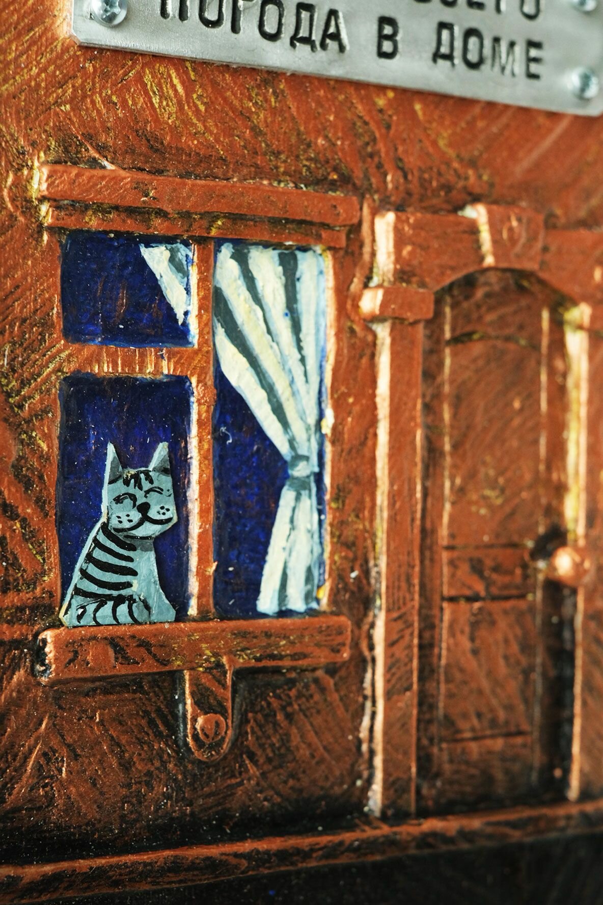 Ключница настенная Бюро находок "Кошкин дом", дерево, 15x38x6 см, 4 ключа