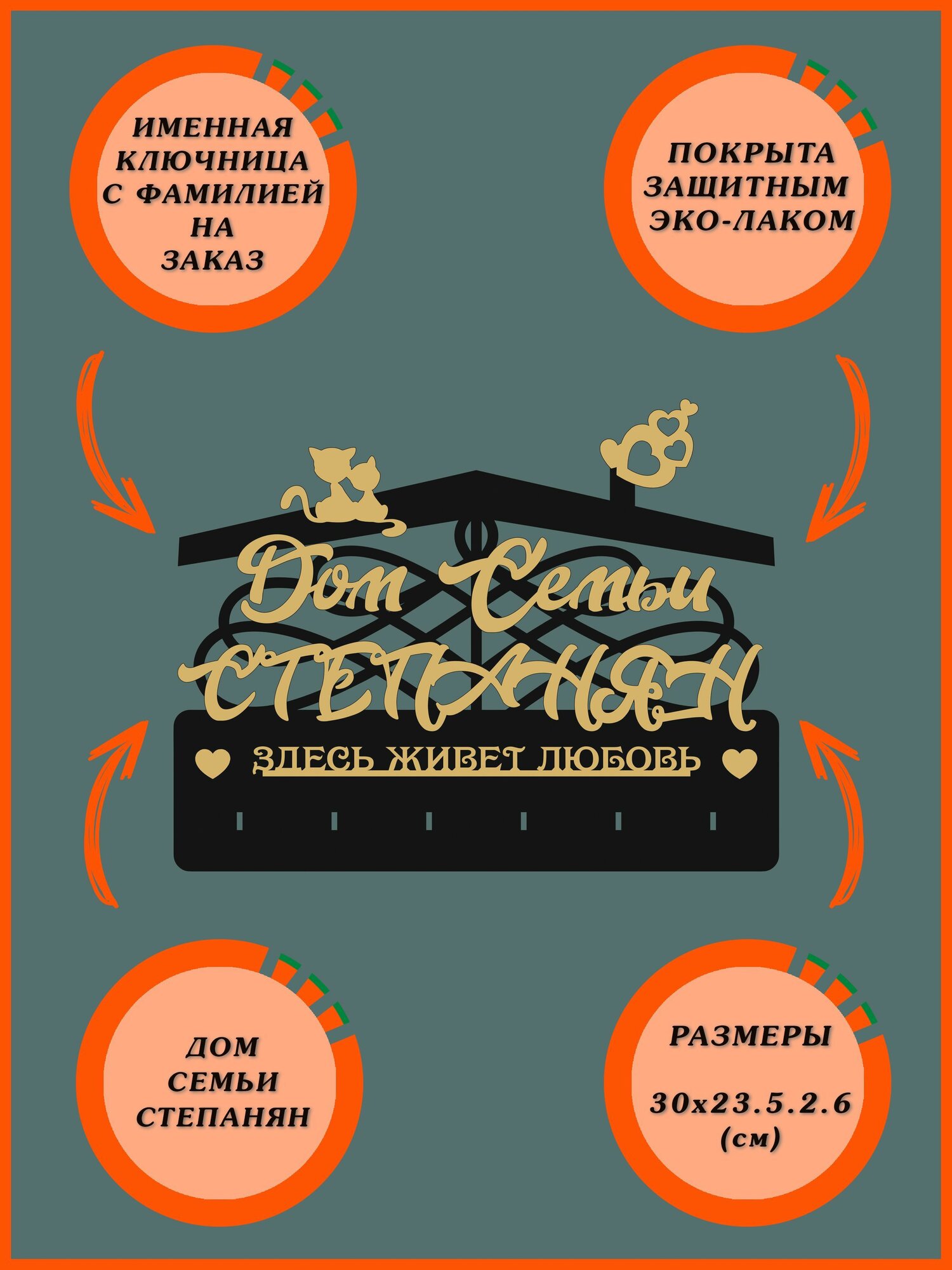 Ключница настенная с фамилией именная "Дом Семьи Степанян" в дом или на дачу в подарок сестре на новый год интересное: