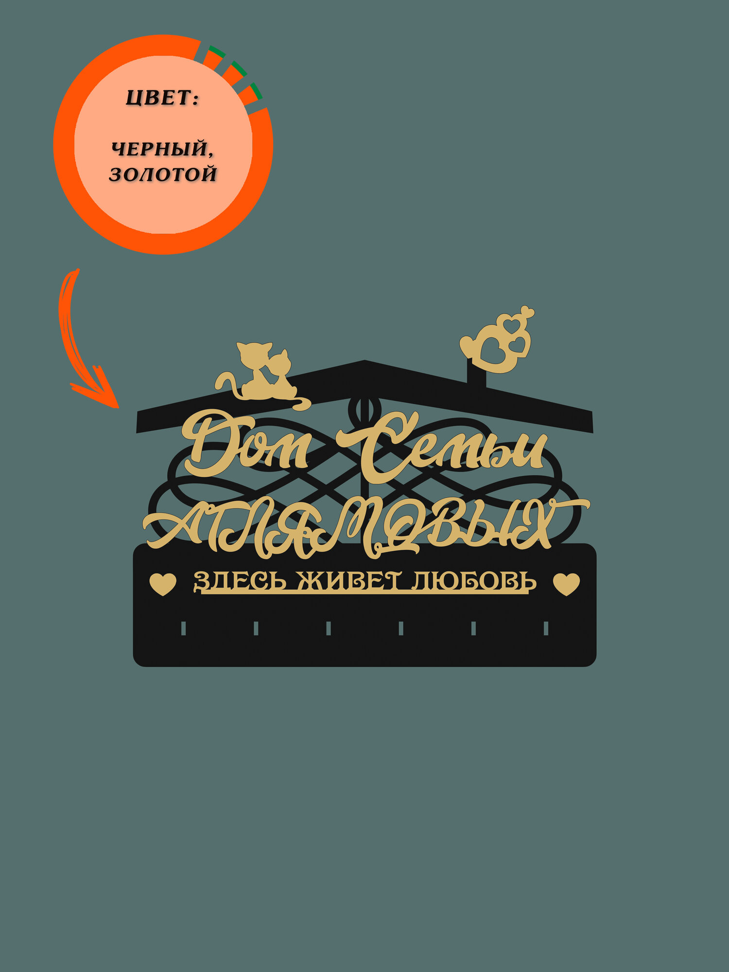 Ключница настенная в прихожую с фамилией именная "Дом Семьи Дмитриевых" на стену