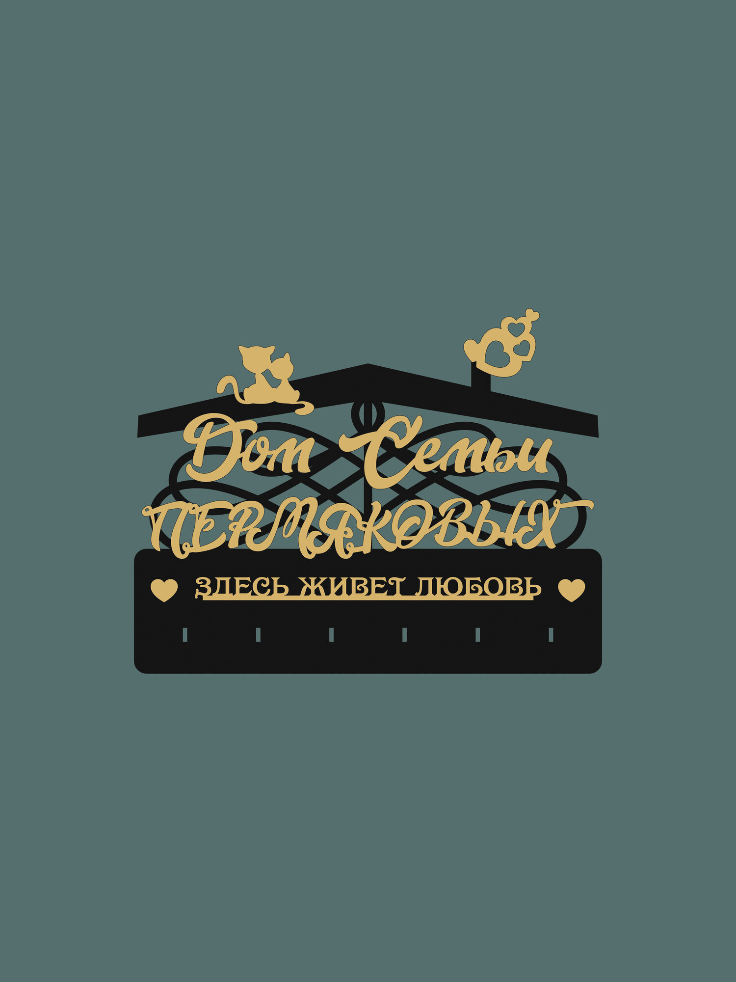 Ключница настенная именная с фамилией "Дом Семьи Шуваловых" в дом с котом и собакой в прихожую в подарок на нвооселье