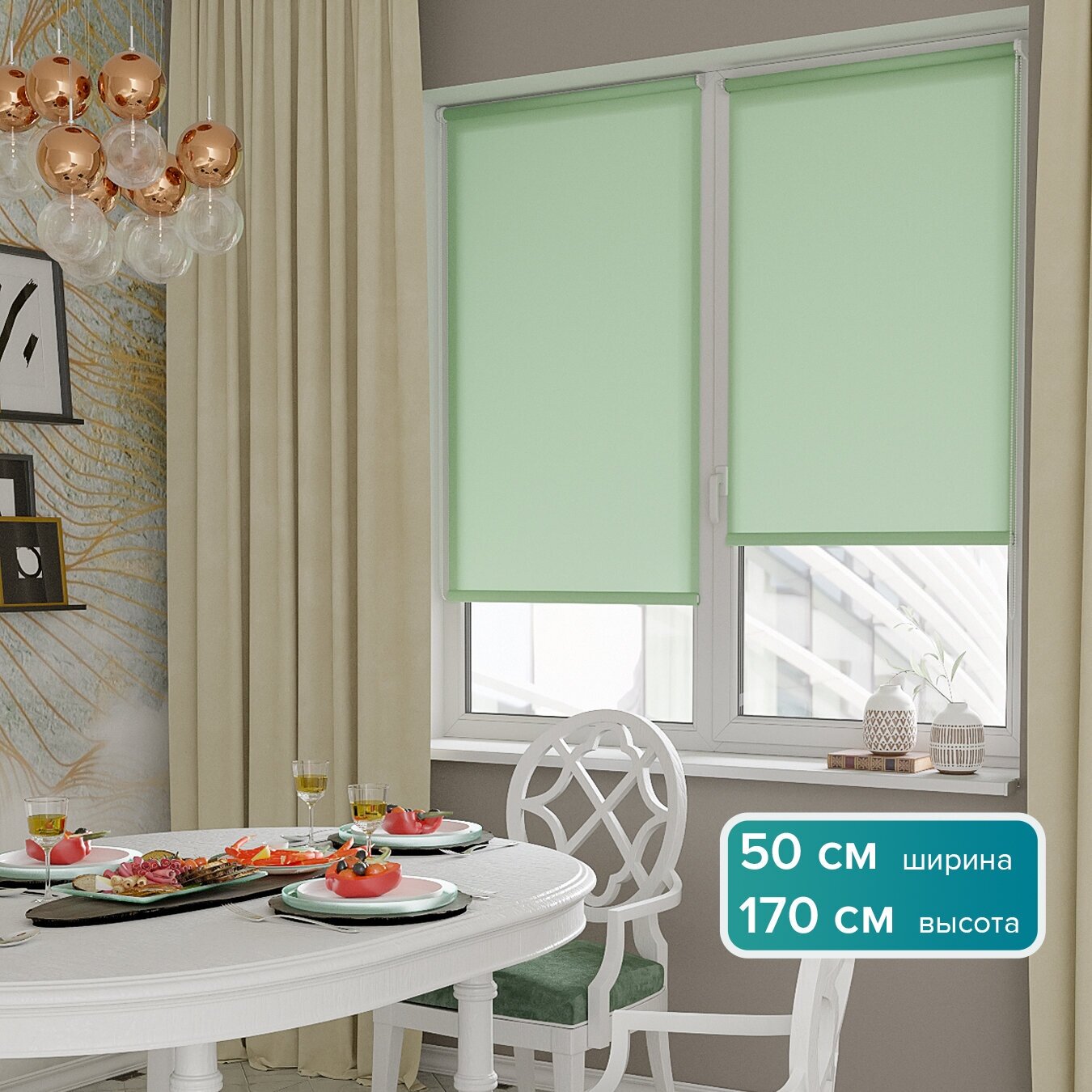 Купить Рулонная штора PIKAMO однотонная 50*170 см, цвет: мятный рулонные жалюзи шторы для комнаты спальни кухни дома