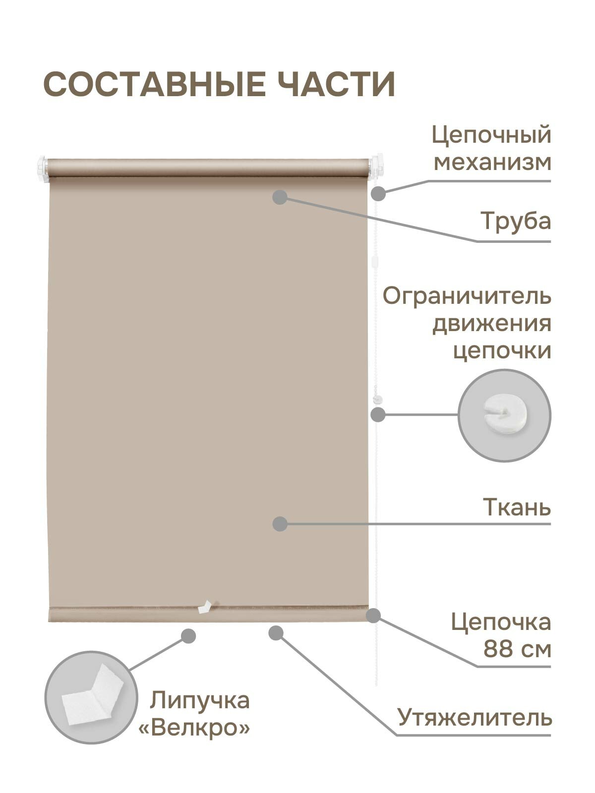 Рулонная штора Эскар Лайф, полиэстер, цвет бежевый, размер 62х160 см