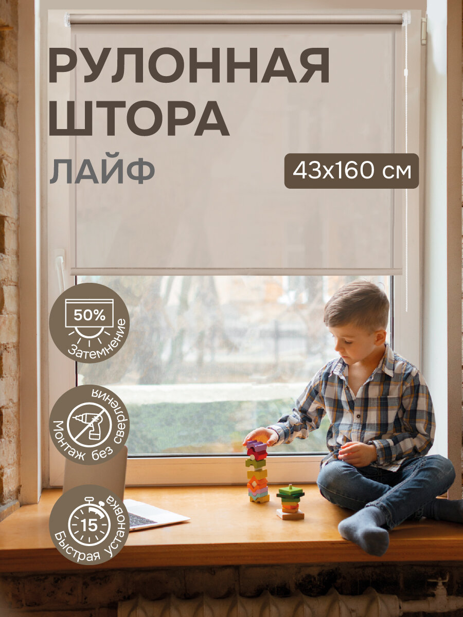 Рулонная штора Эскар Лайф, полиэстер, цвет бежевый, размер 48х160 см