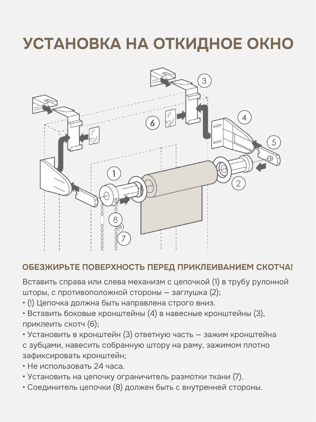 Рулонные шторы на окна 180х170 см Эскар блэкаут LUX цвет капучино