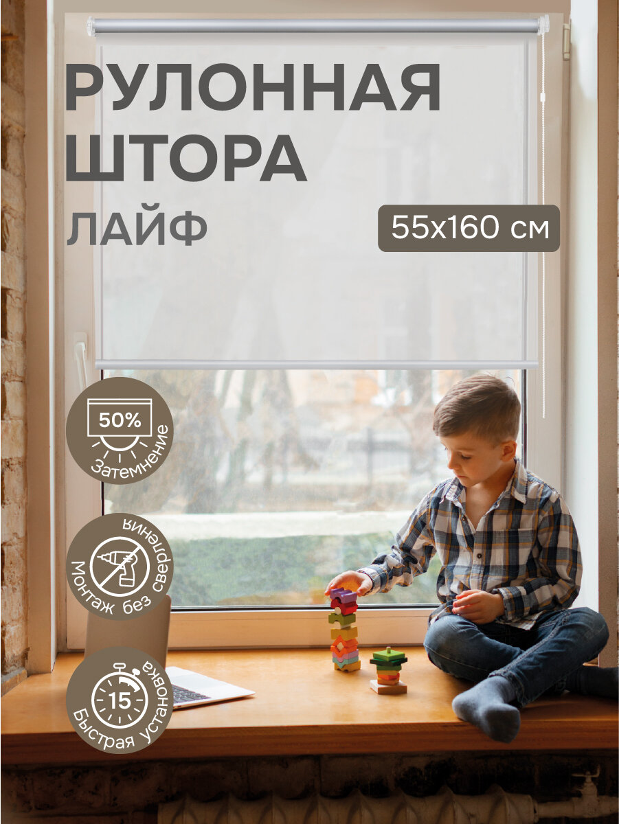 Рулонная штора Эскар Лайф, полиэстер, цвет крем, размер 48х160см