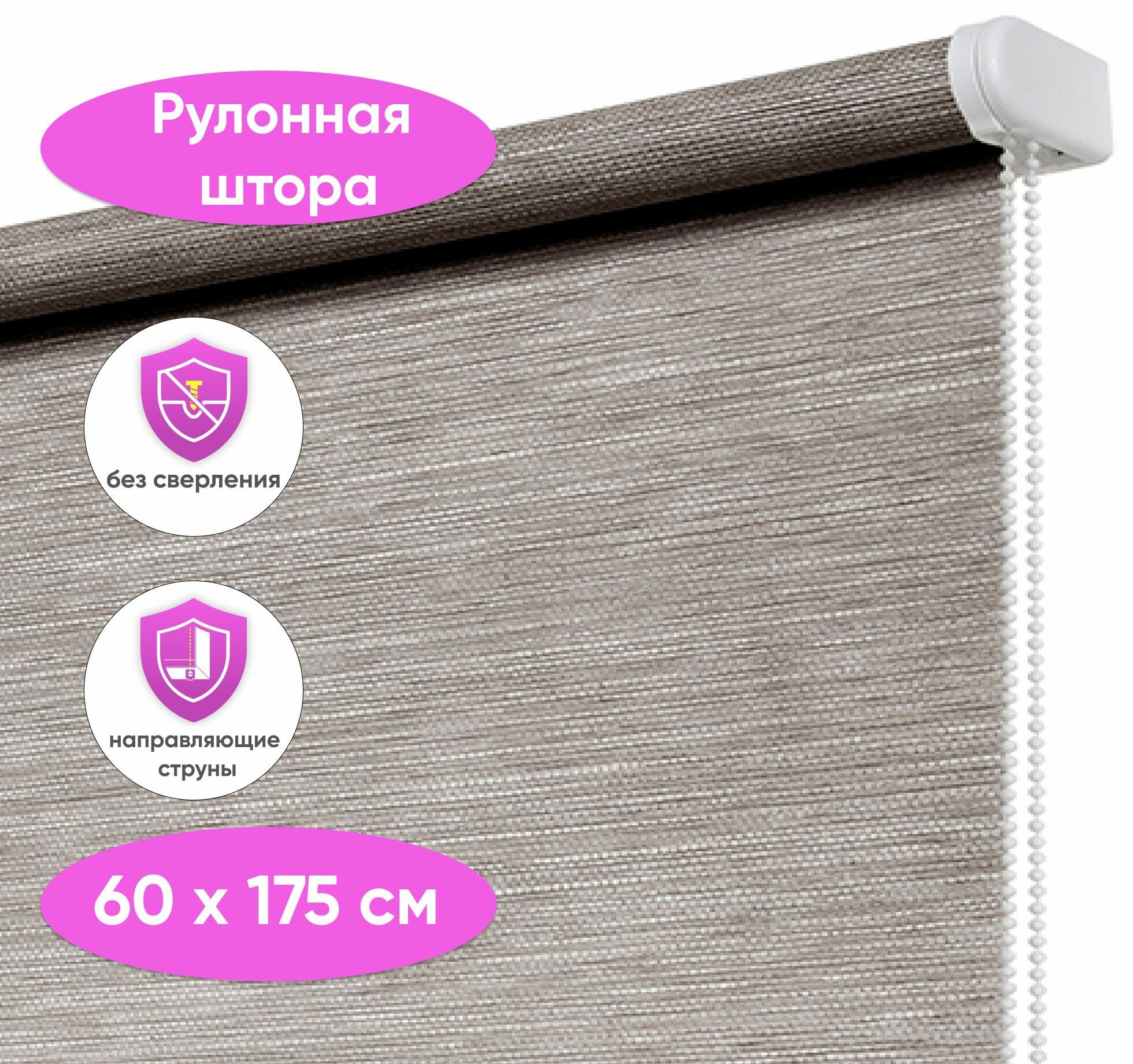 Рулонная штора на окна 60 х 175 см Папирус коричневый, рулонные жалюзи на окна