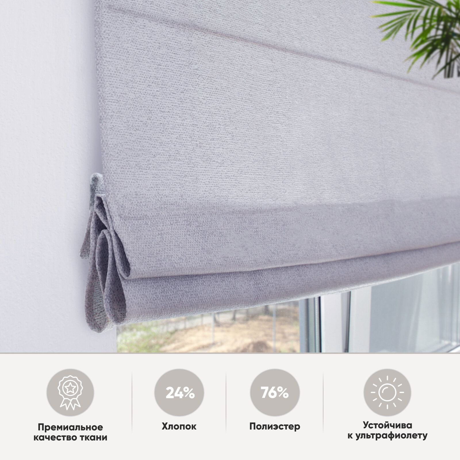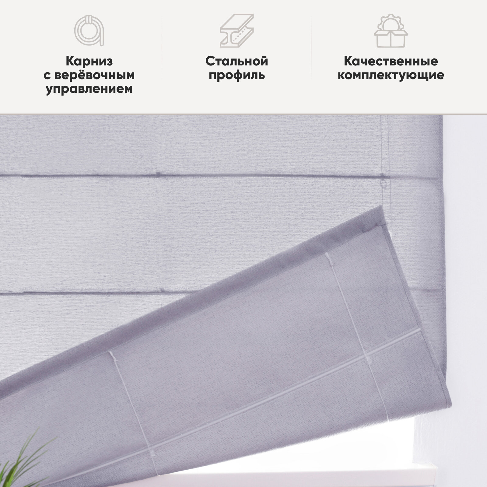 Римская штора Эскар Велия, веревочный механизм, полиэстер, хлопок, нежно-серый, 180х190 см
