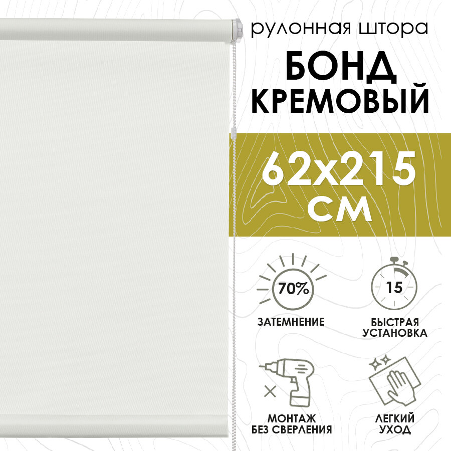 Купить Рулонная штора, для балконной двери Бонд, цвет крем 62х215 см