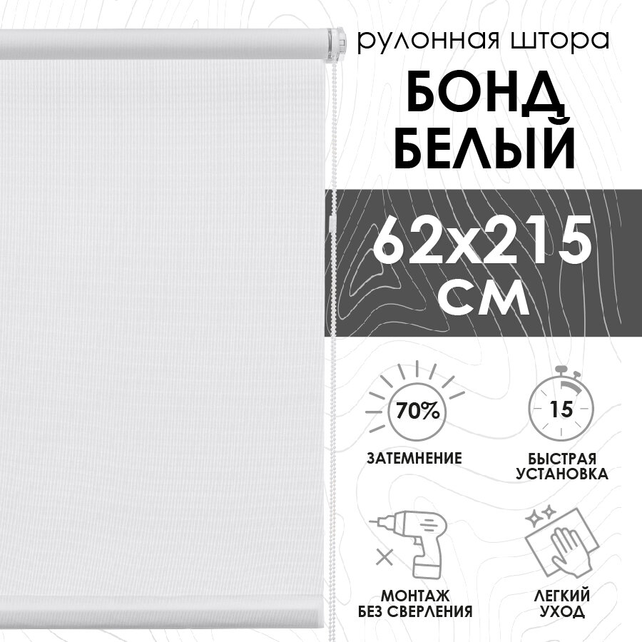 Купить Рулонная штора, для балконной двери Бонд, цвет белый 62х215 см