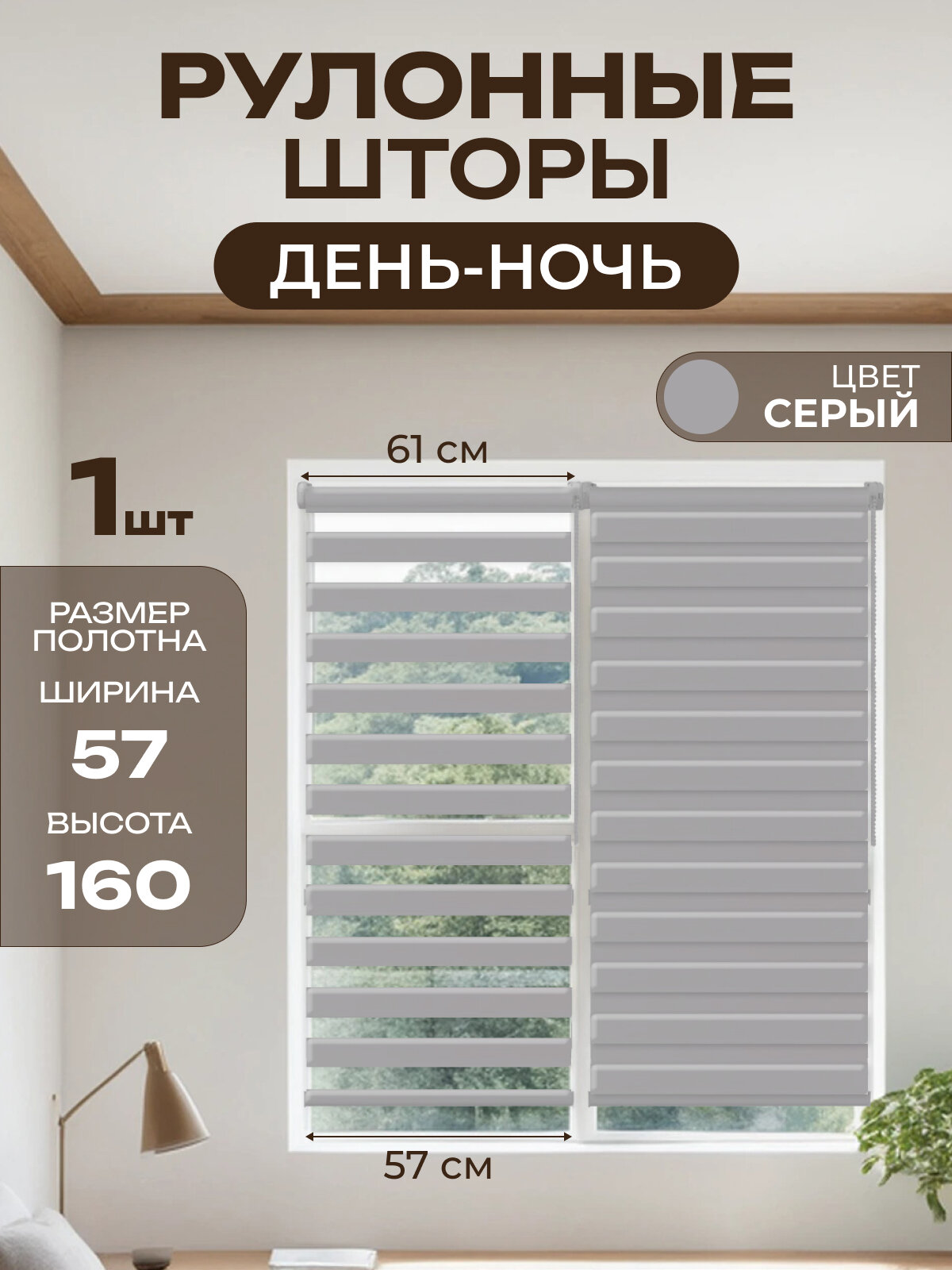 Рулонные шторы день ночь 57 см, цвет Темно-серый