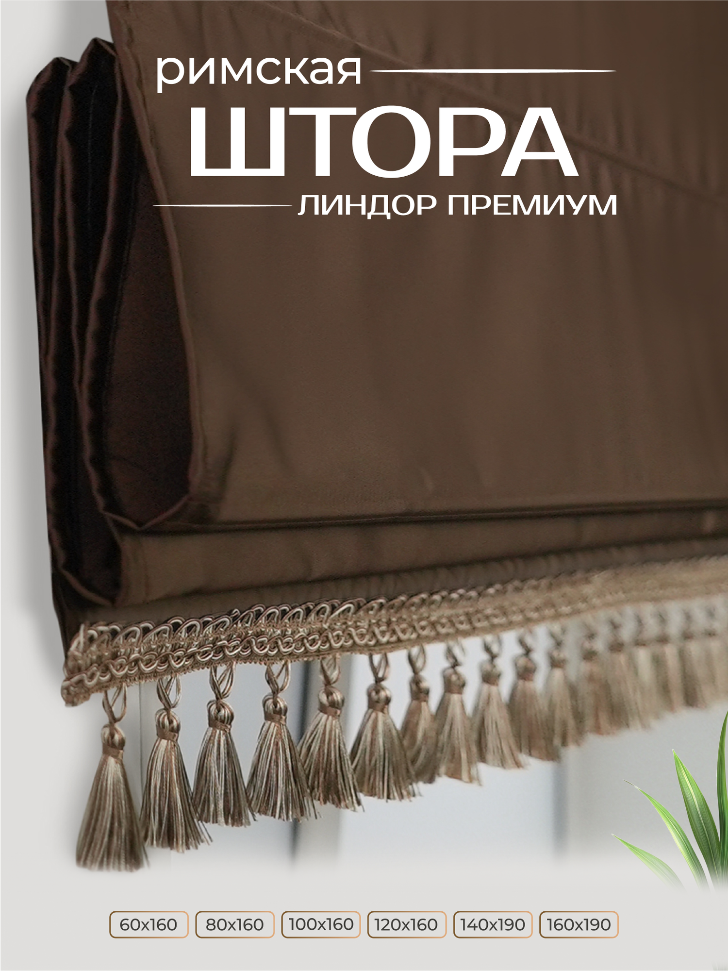 Римская штора размер 60х160 см, Линдор Премиум, цвет шоколадный