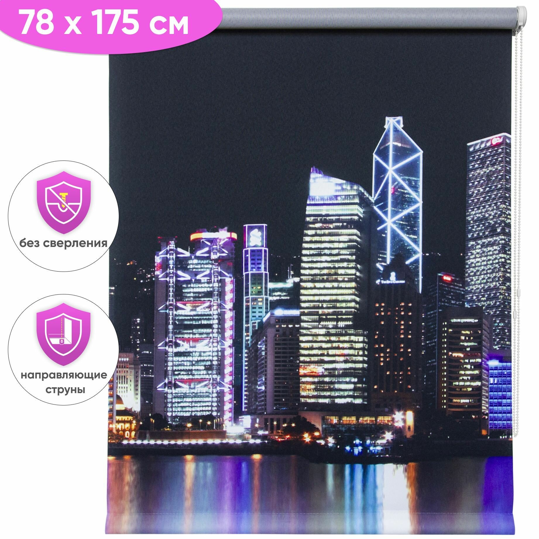 Рулонная штора на окна 80 x 175 см "Мегаполис ночь", рулонные жалюзи на окна