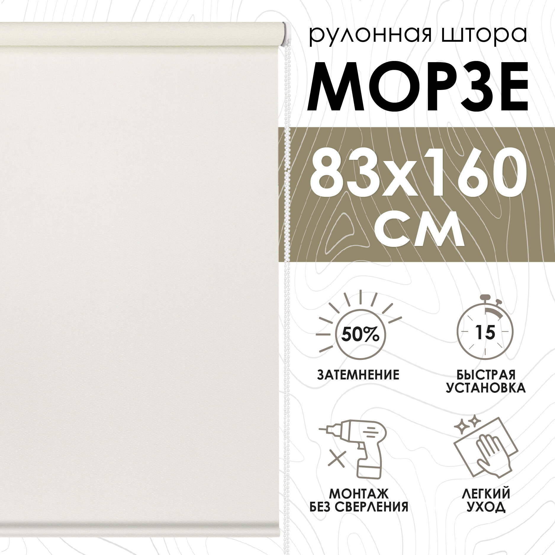 СохранитьРулонная штора Эскар Морзе, полиэстер, цвет экрю, размер 83х160 см интересное: